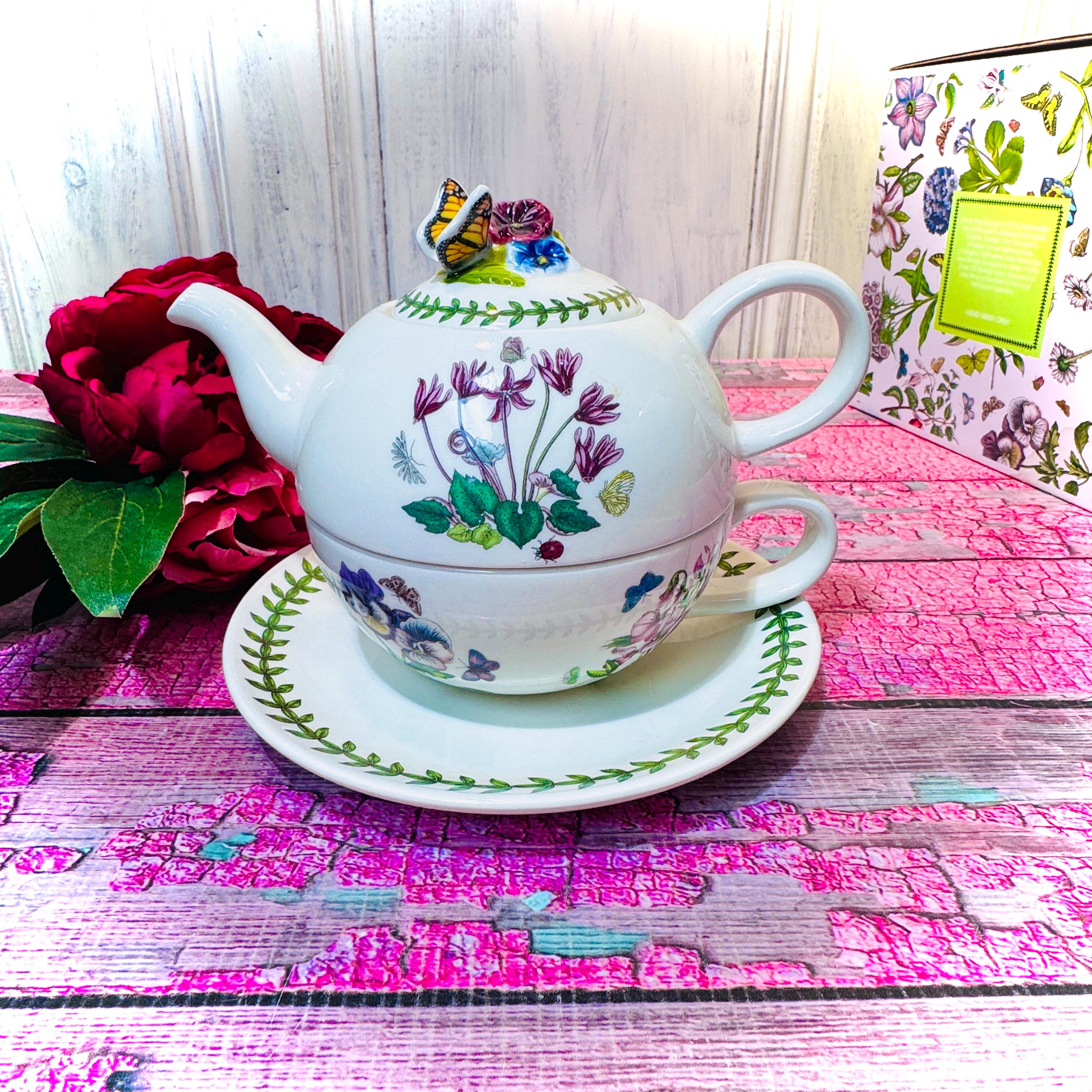Portmeirion Tea for One Botanic Garden Bouquet Teapot 12 oz IOB Excellent Flowers Butterfly Finial M...