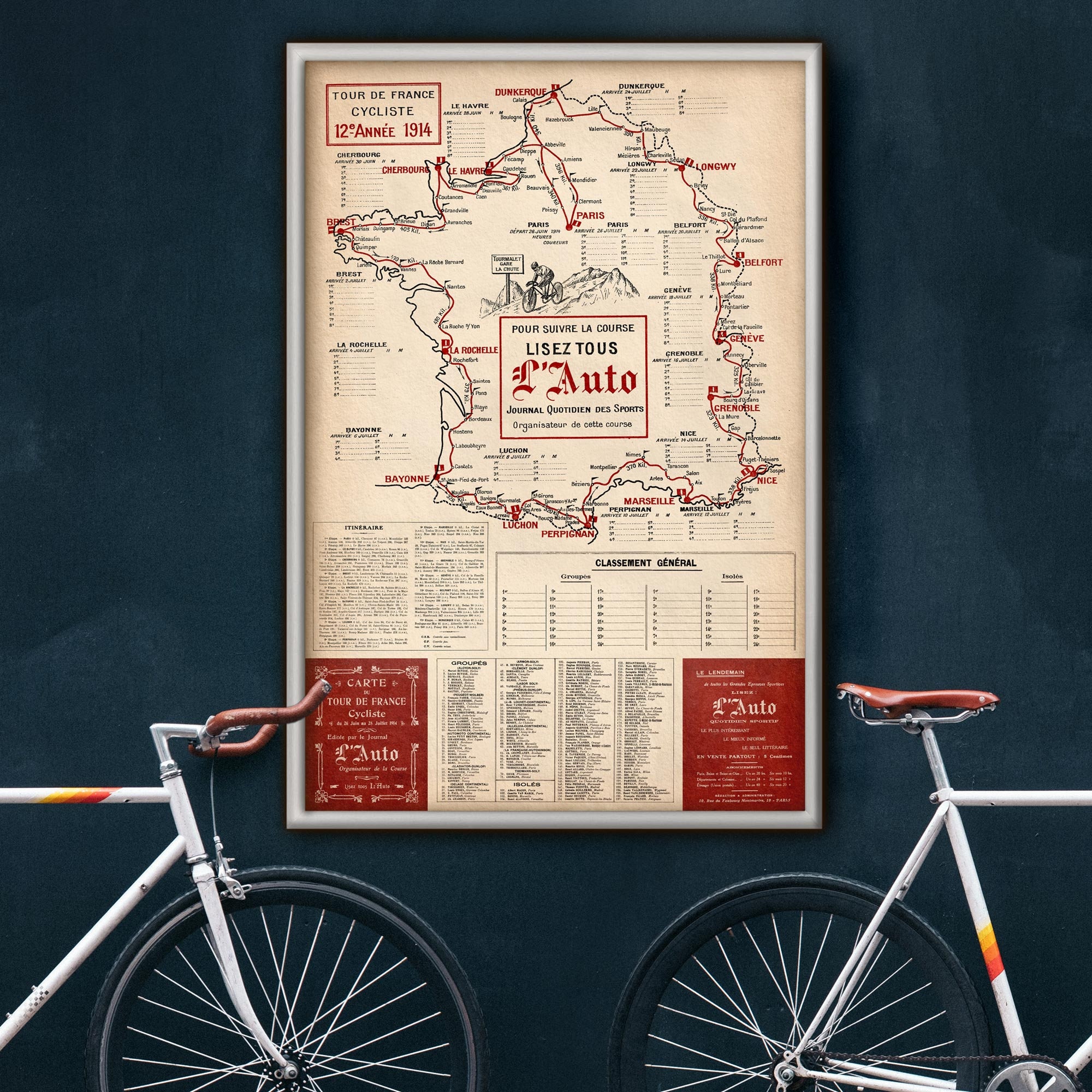 Tour de France map poster print 1914, 6 sizes up to 40x60′&pr...