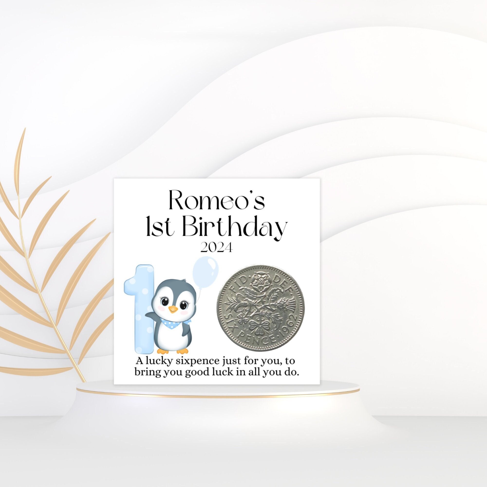Baby's First Birthday - Lucky Sixpence Coin - 1st Birthday Boy - Ba...