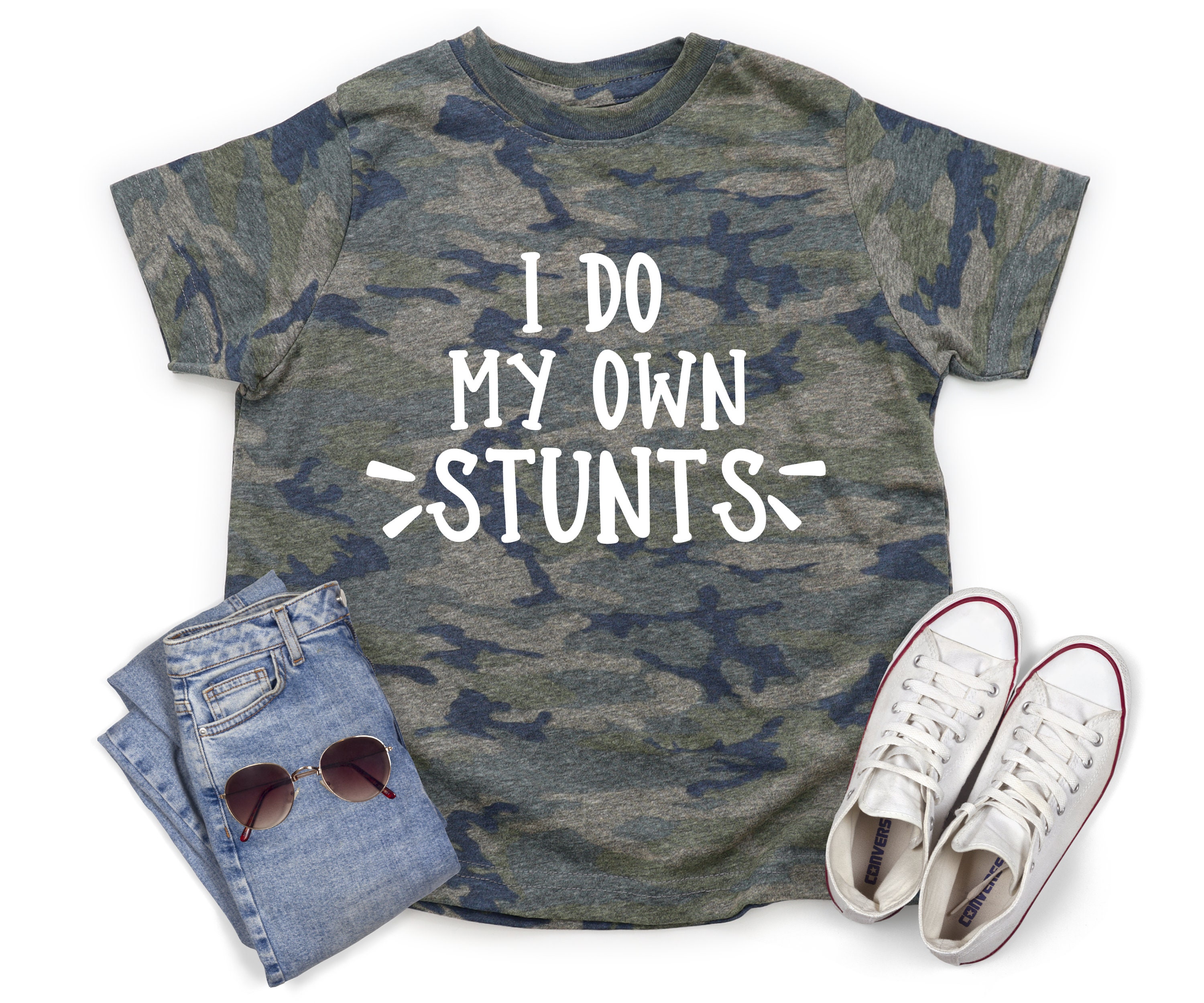 I Do My Own Stunts Boy Camo Shirt Boy Stunt Tee Camouflage Solid Wh...