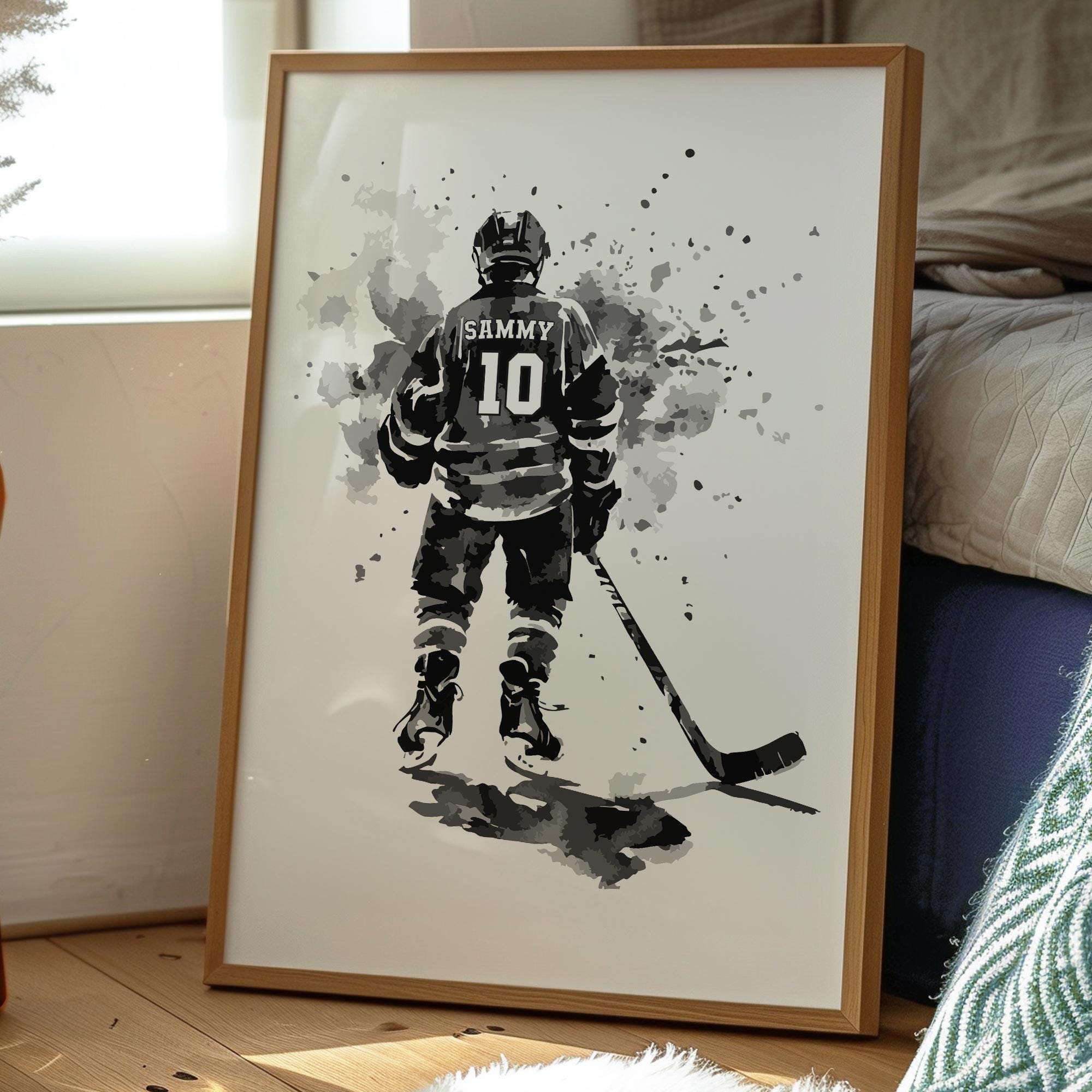 Personalized Hockey Print, Custom Jersey Number, Boys Room Decor, B...