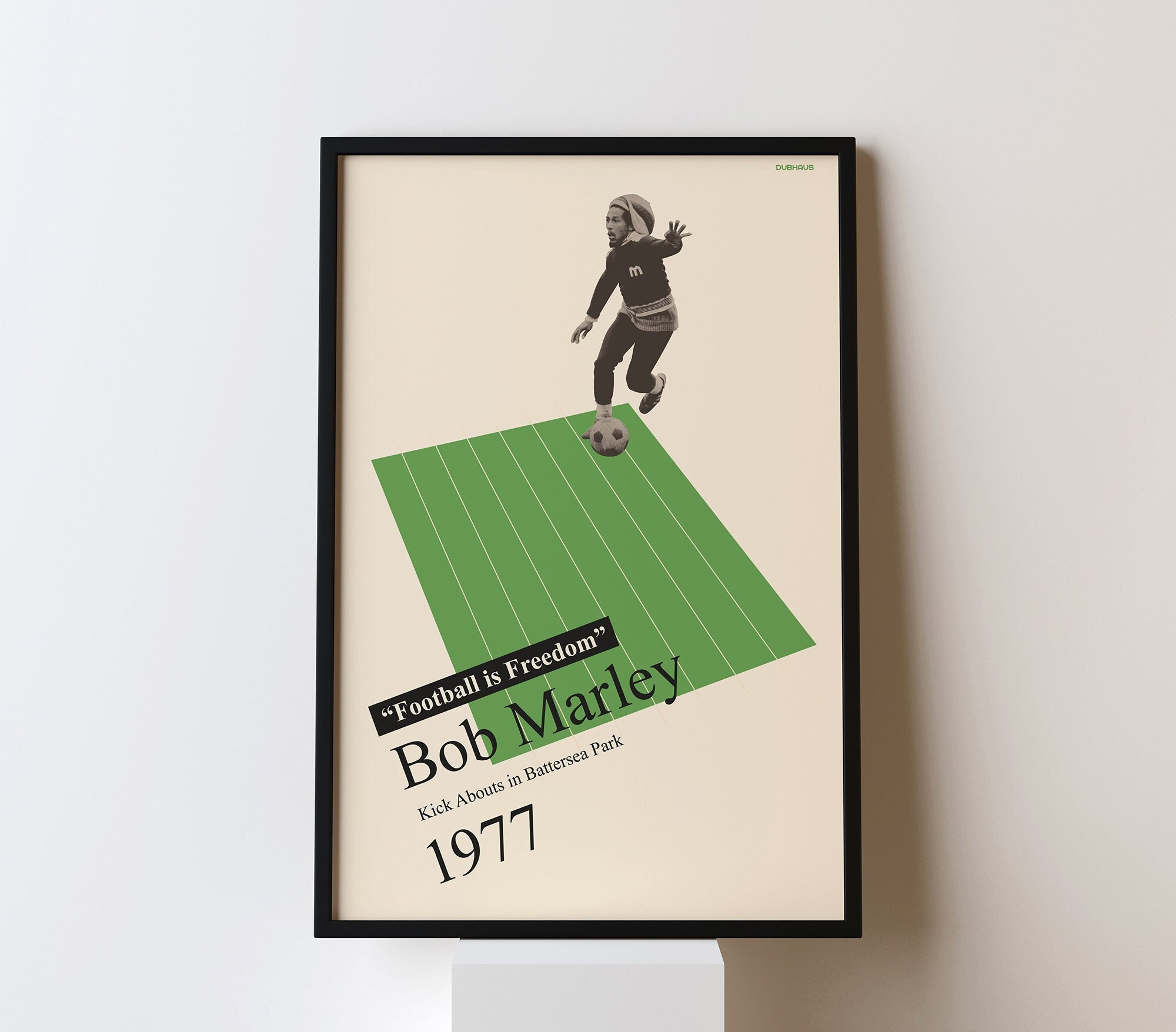 BOB MARLEY plays FOOTBALL 1977 Poster Print Mid Centur Modern Swiss...