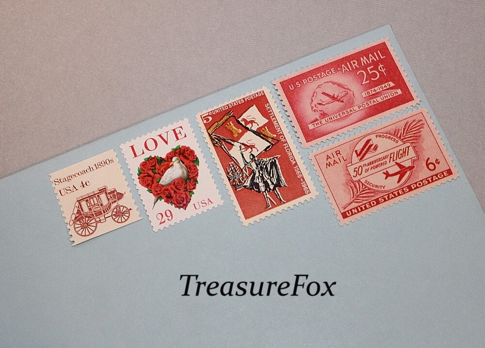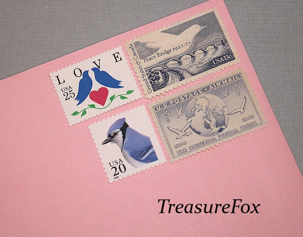 Use these themed Unused vintage US stamps for postage on your letters, birthday cards, wedding and p...