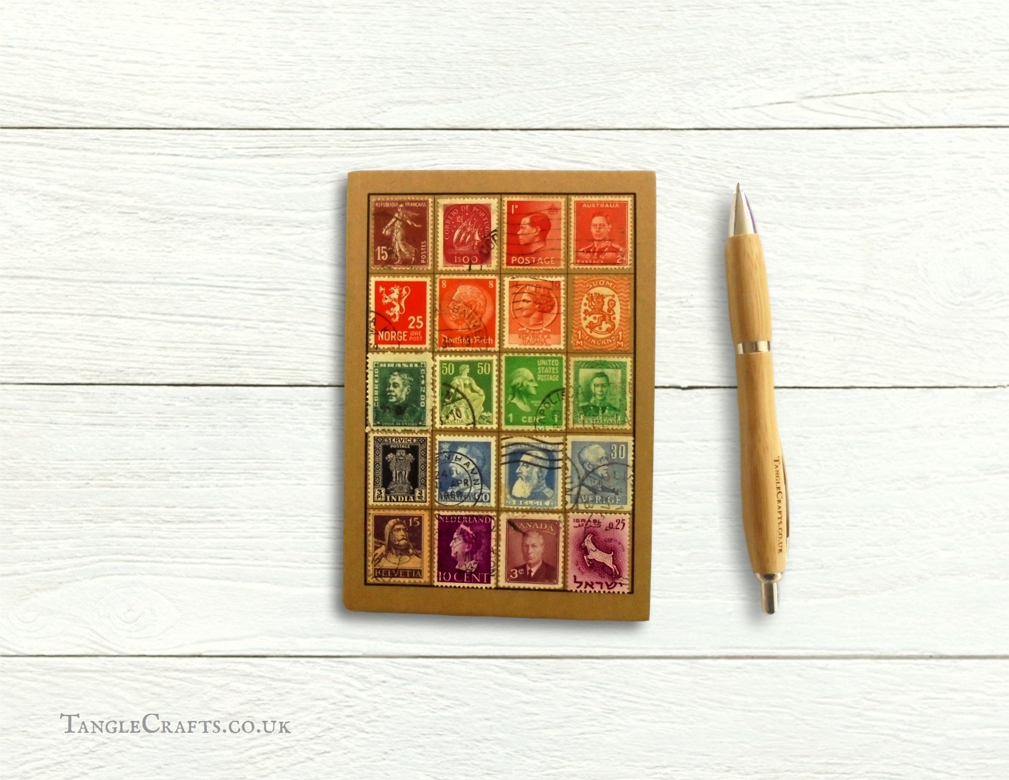 A6 Address & Birthday Book - Featuring a rainbow of genuine vintage postage stamps from around t...