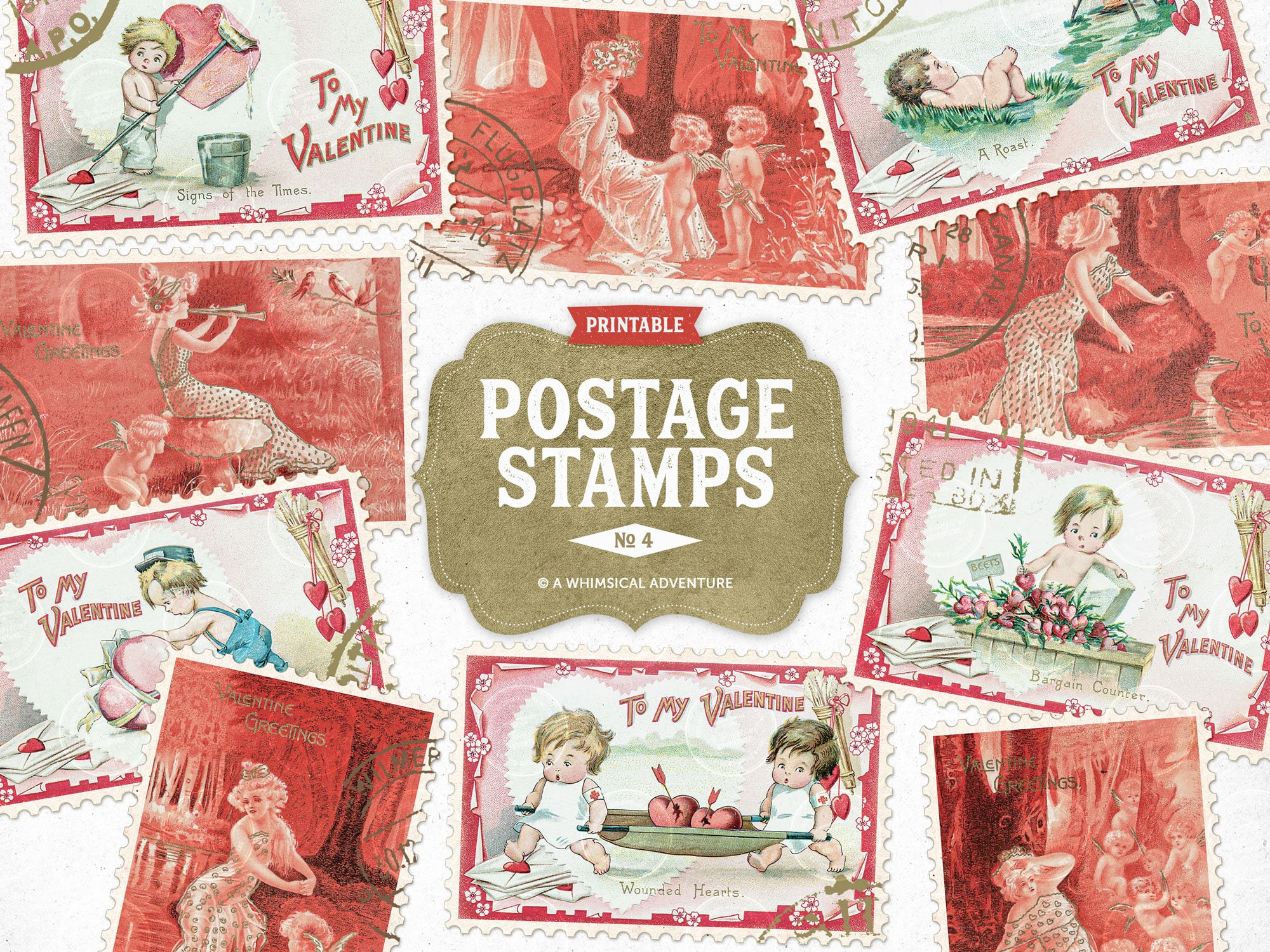 Valentine Postage Stamps, Vintage Love Stamps, Valentines Day Scrap...