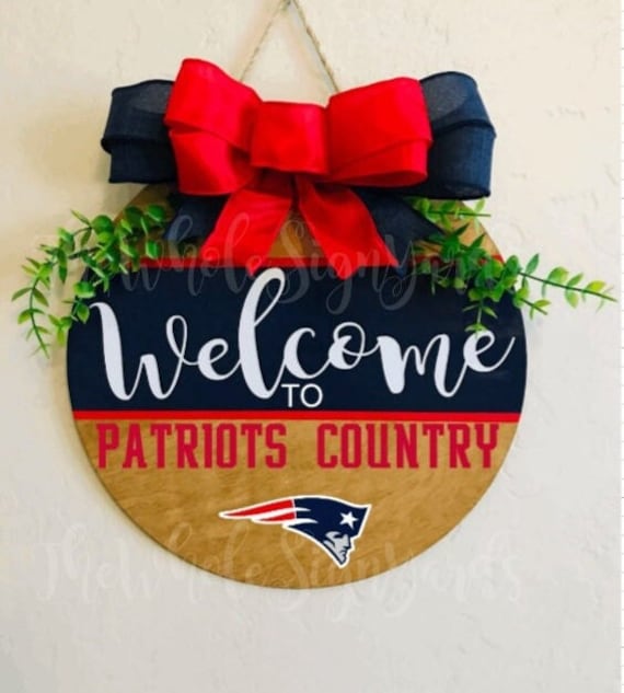 "12\" New England Patriots Wood Round Door Sign Welcome T...
