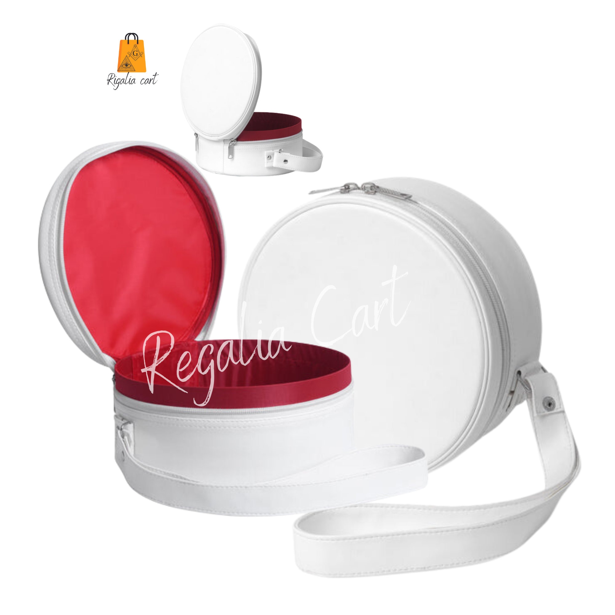 Masonic Crown Cap Case Round Shape Imitation White Leather 10'' Str...