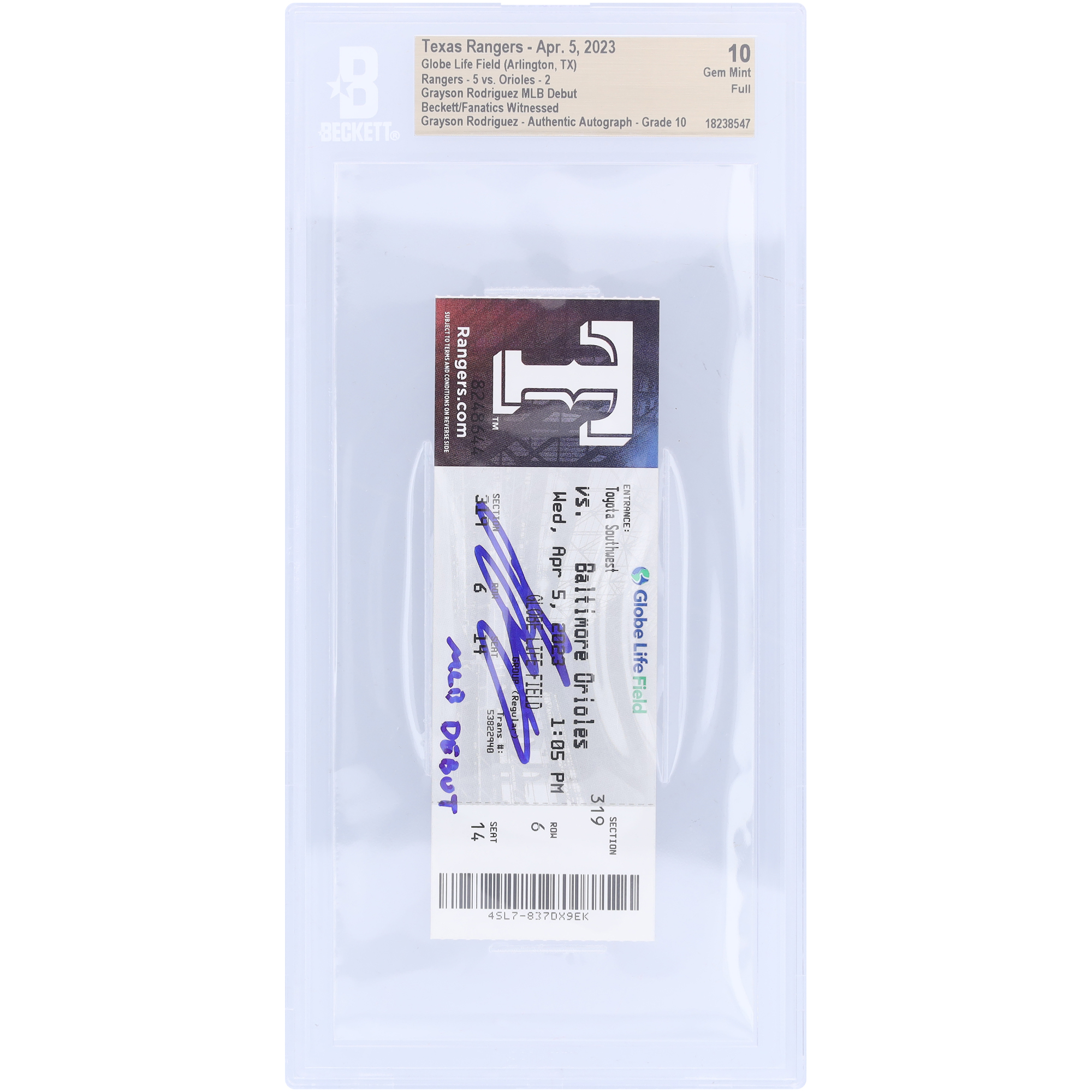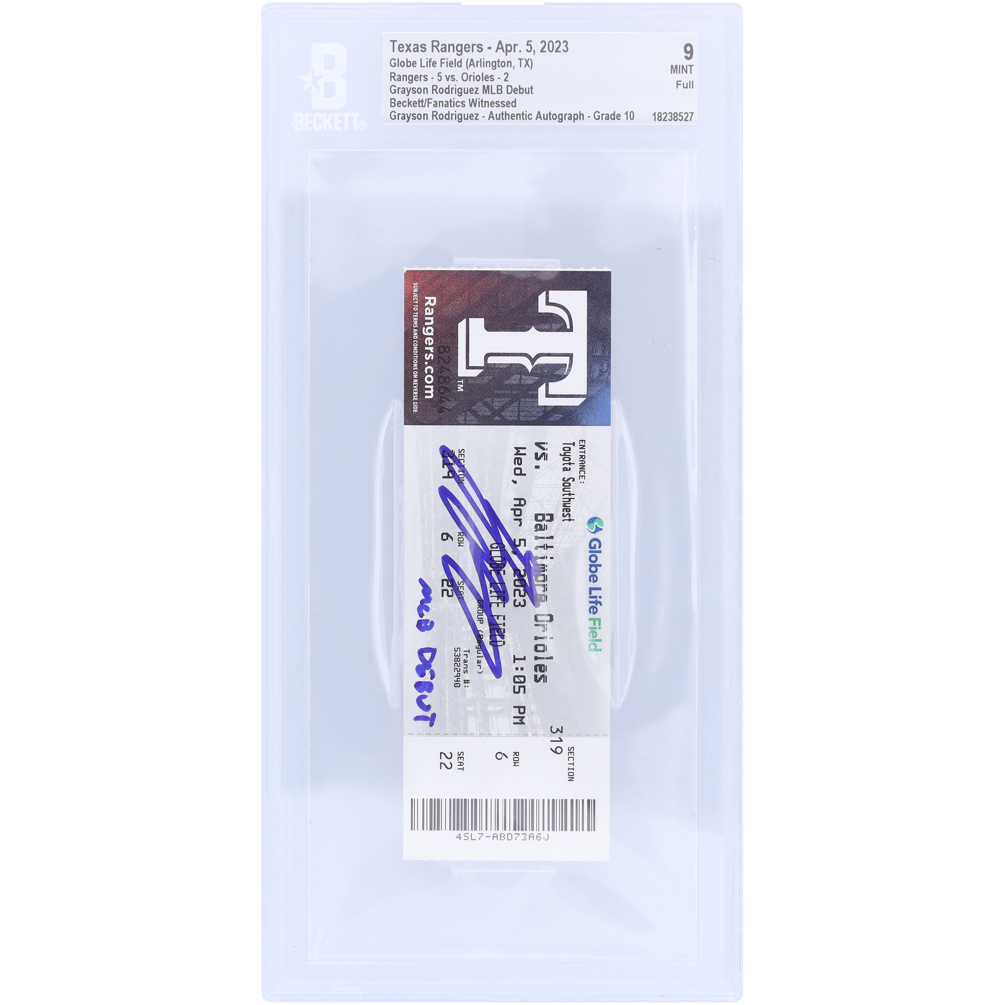 Grayson Rodriguez Baltimore Orioles Autographed MLB Debut Beckett F...