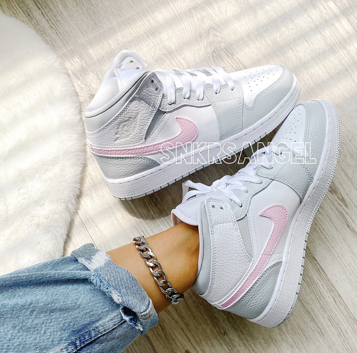Custom nike air jordan 1 mid light grey baby pink