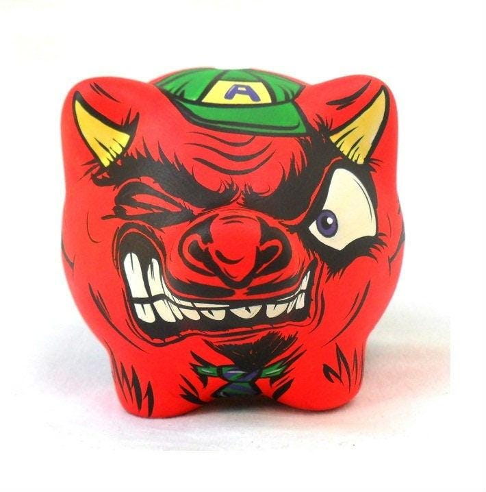AC/DC Angus Young Piggy Bank - Hard Rock Guitar Devil Musician Rocker - Original Art Custom Painted-...