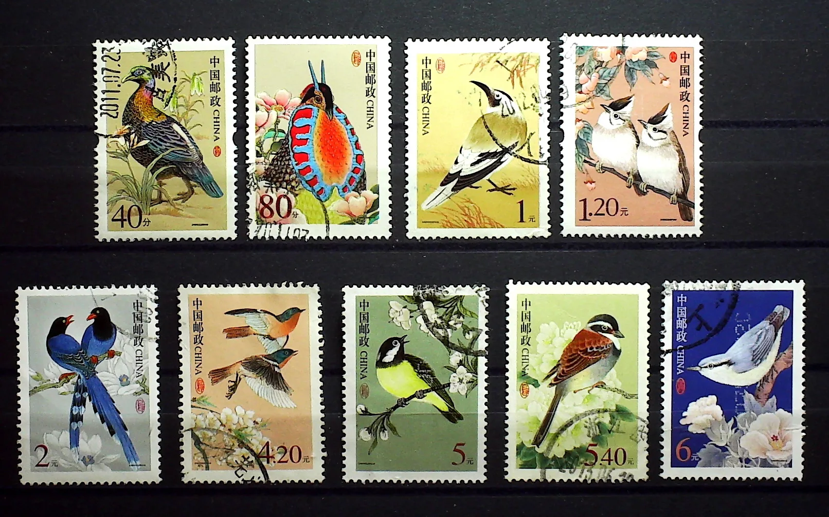 Real Used China Post Stamps Postage 9 Beautiful Birds In China Complete Set Collectible Postage Stam...