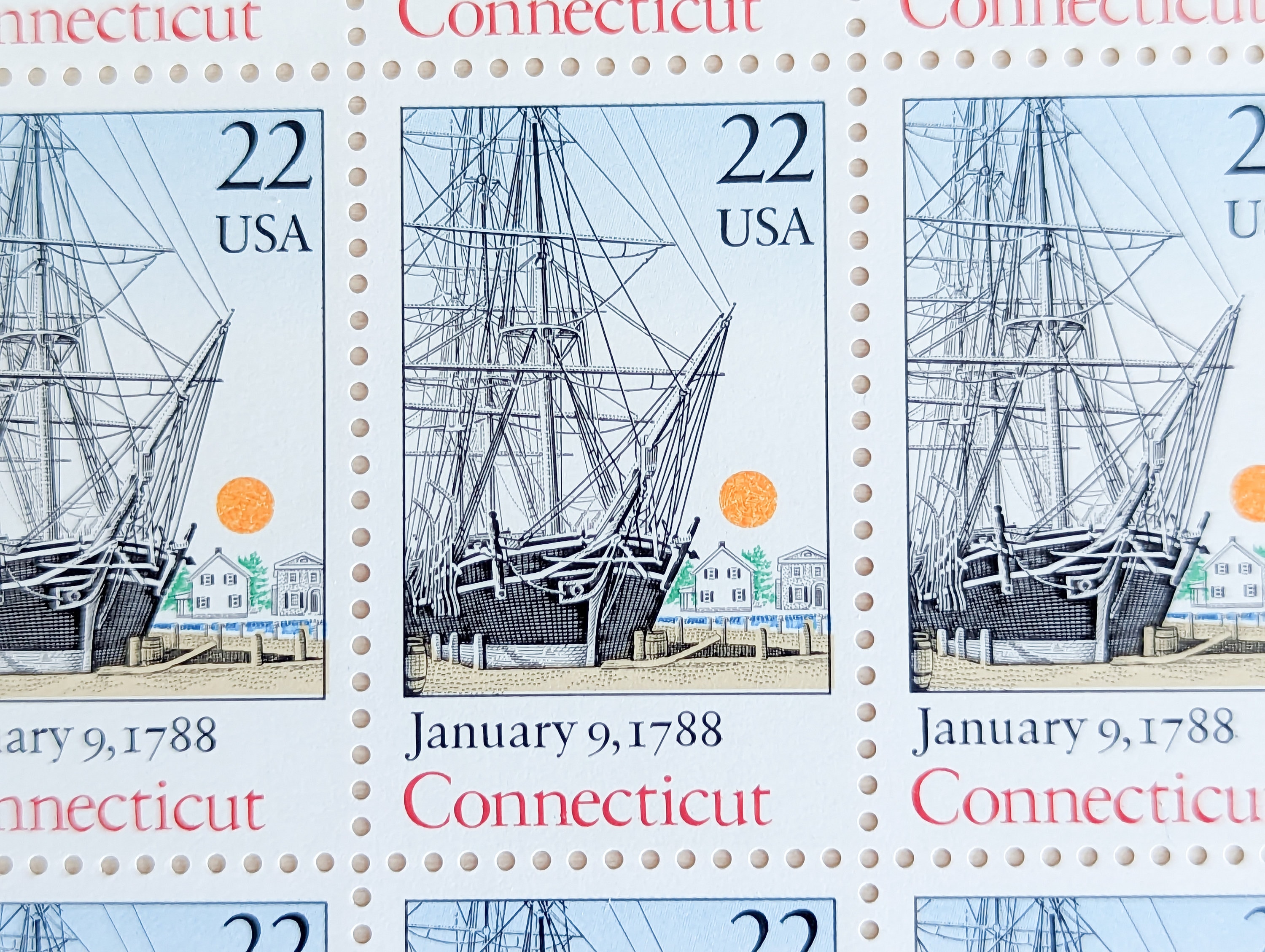 Sheet of 50 Connecticut Stamps, Unused Postage Stamps, 22 Cent Stam...