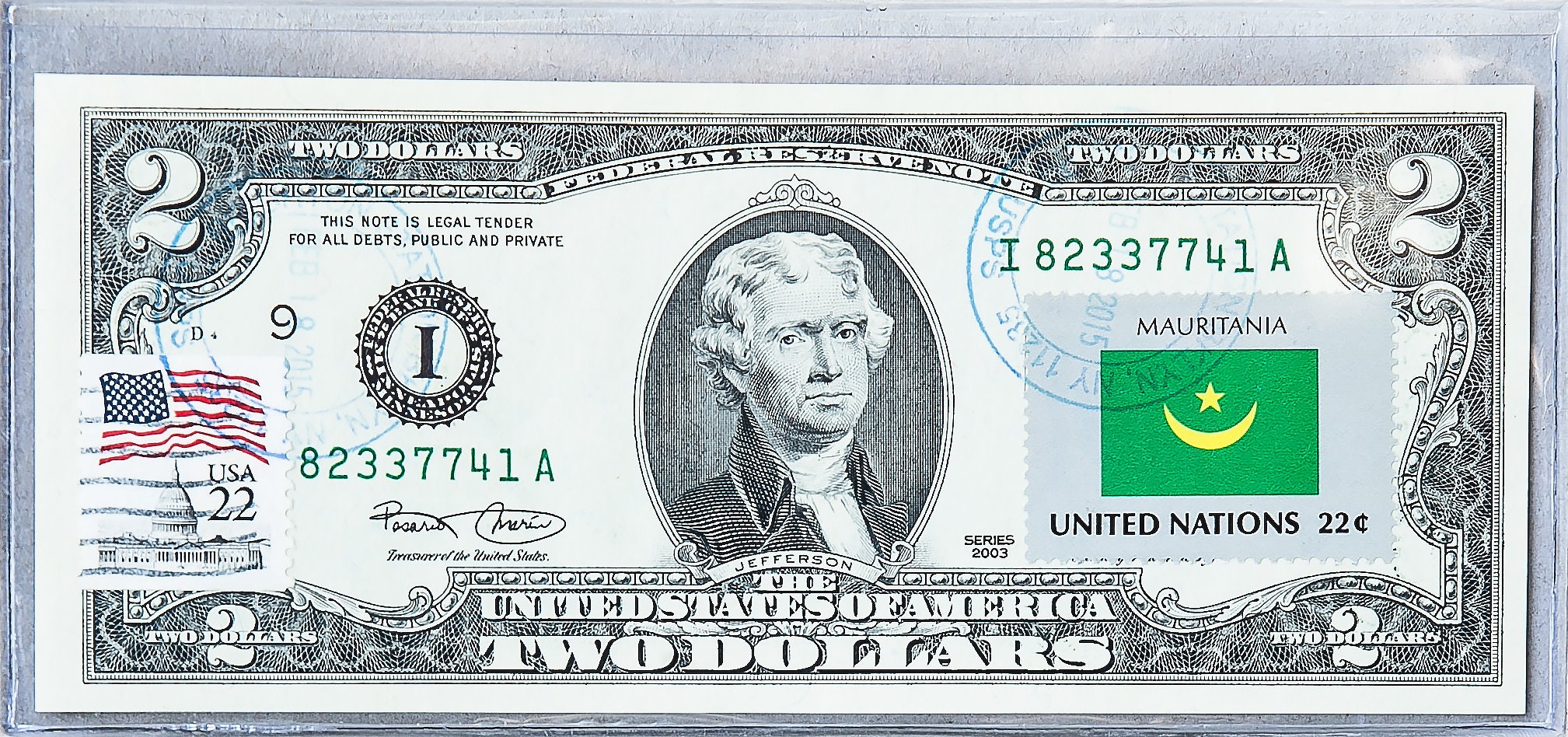 MONEY US $2 DOLLARS 2003 FEDERAL RESERVE NOTE MINNEAPOLIS FLAG OF MAURITANIA GEM UNC Selling Money U...
