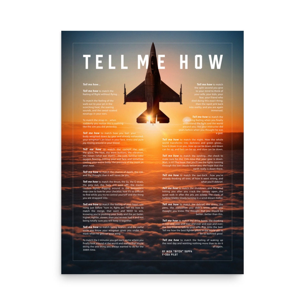 "F-16 Viper Poster with \"Tell Me How\" ode to flight This is a luxurious 18 x 24\&qu...