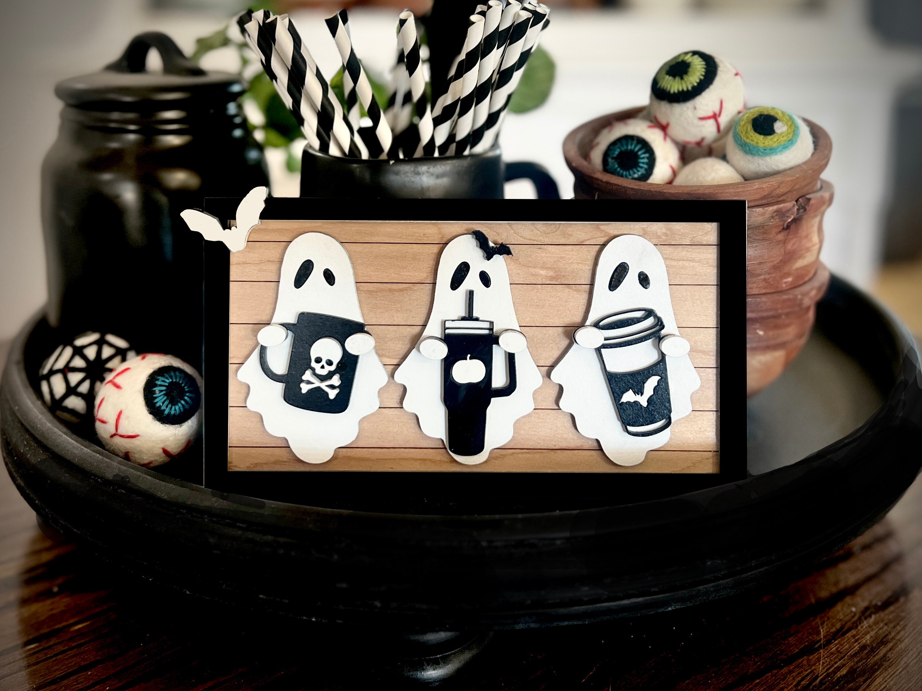 "Coffee Bar Halloween Tiered tray sign fall coffee Stanley cup...