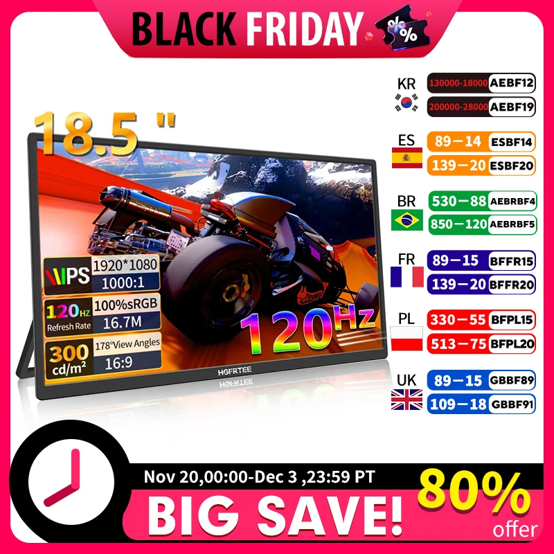 HGFRTEE 18.5" Full HD Portable Monitor Computer Gaming Display 120Hz 100%sRGB With Dual Speaker...