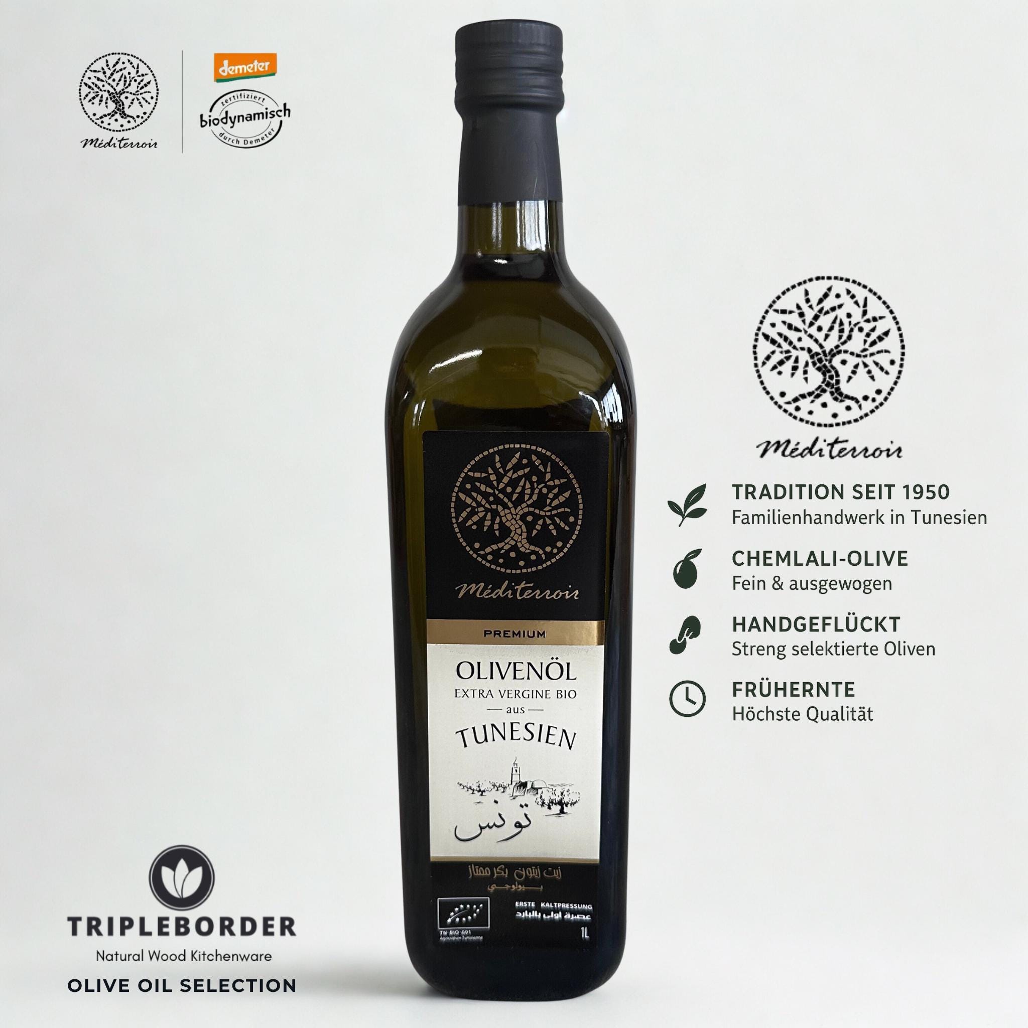 Méditerroir Organic Extra Virgin Olive Oil - 1 liter, cold-pressed, spicy & robust. Premi...