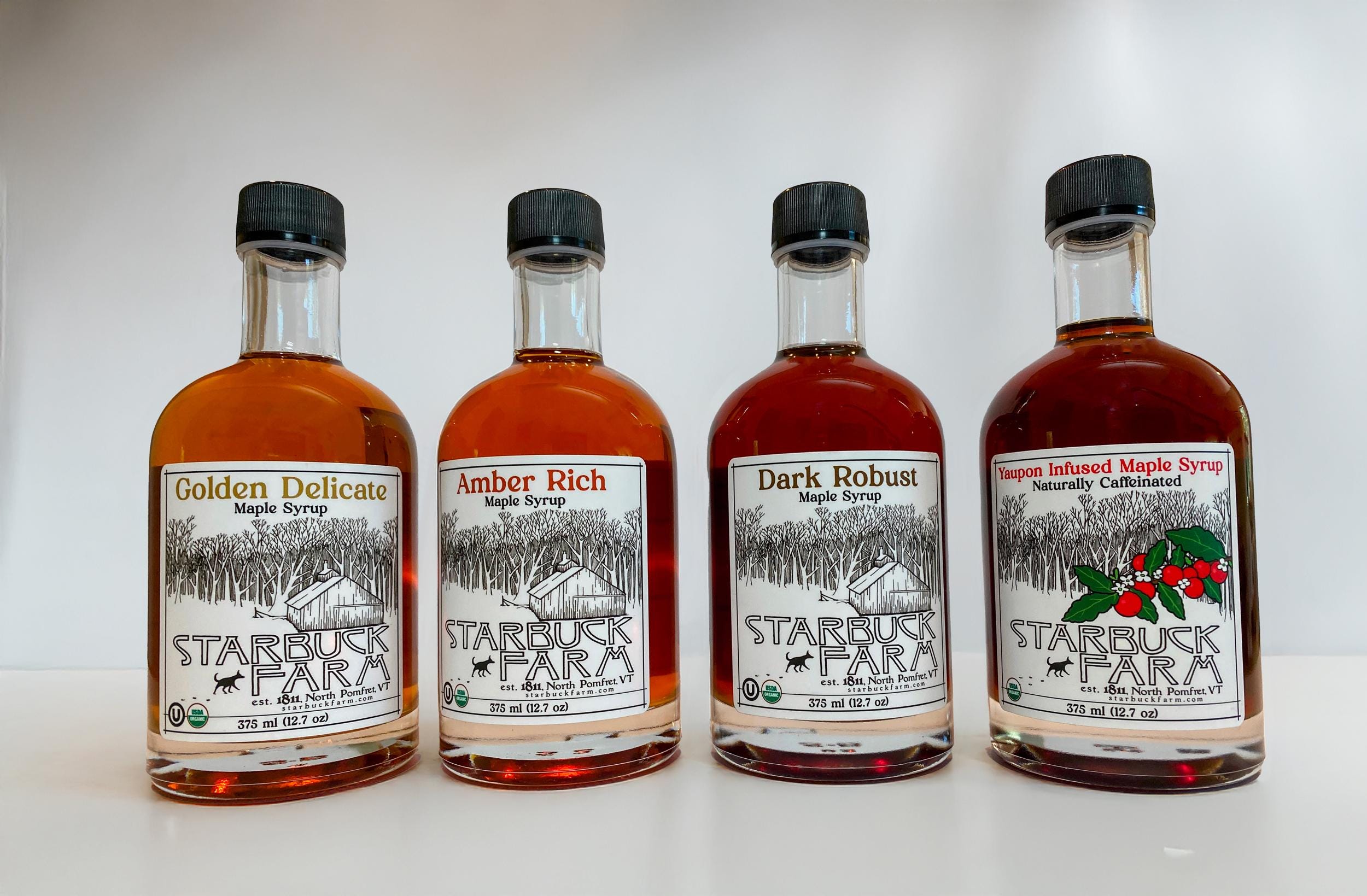 Taste the full range of Starbuck Farm's organic Vermont maple syrups -- Golden Delicate, Amber Rich,...