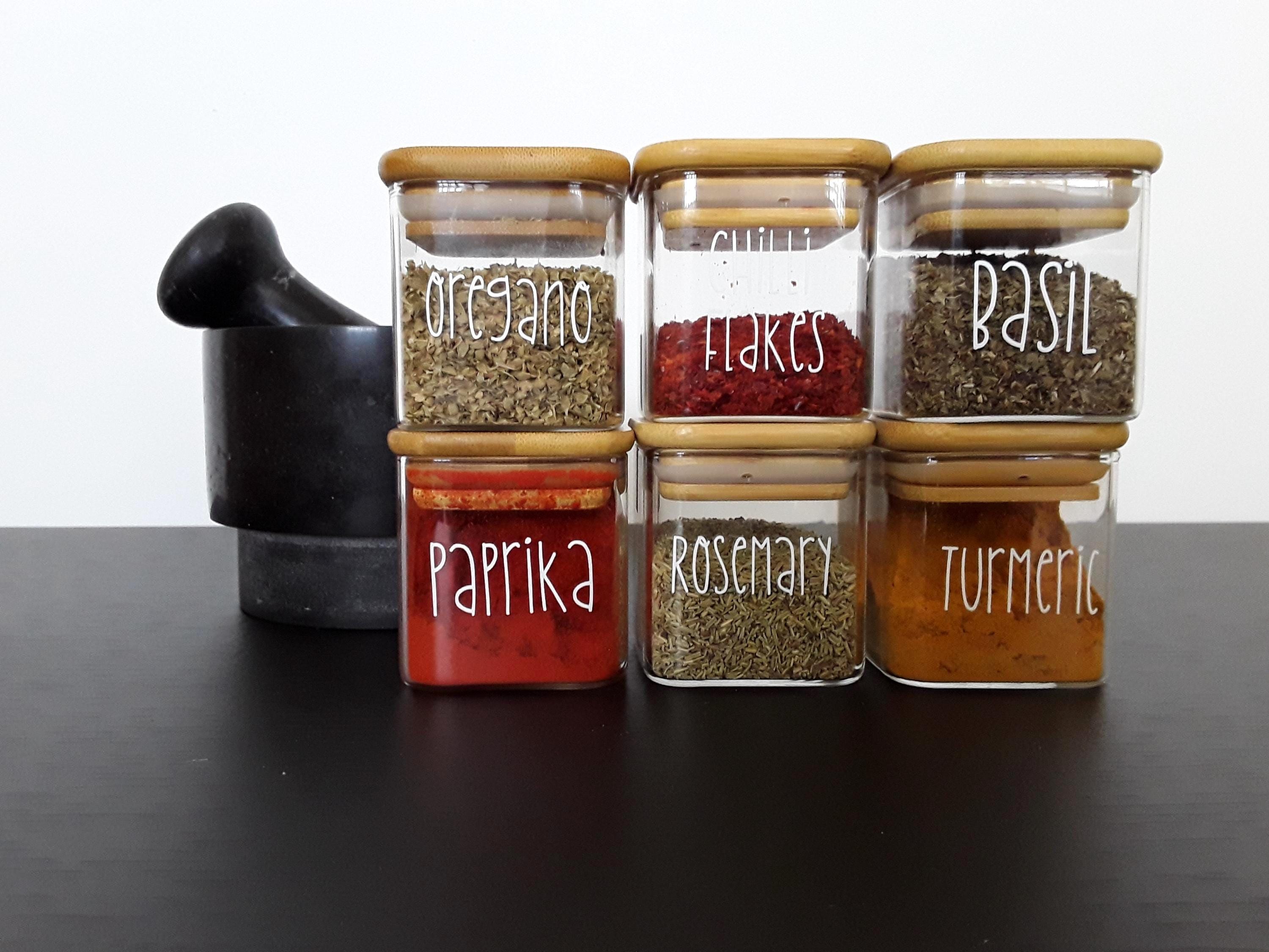 "Organic Herb & Spices / Eco Friendly Personalised Glass Jars with Airtight Mason lids. Eac...