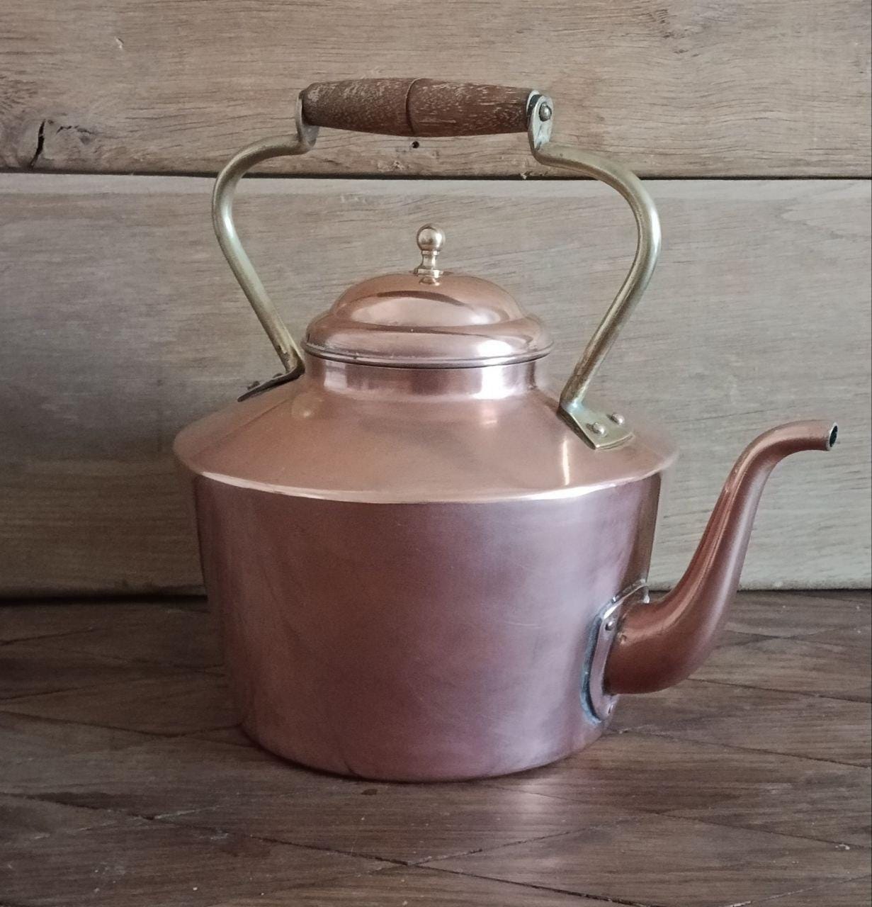Antique Copper Teapot by TREFLE with Brass Handle, Mid Century Vintage Copper Kettle, French Kitchen...