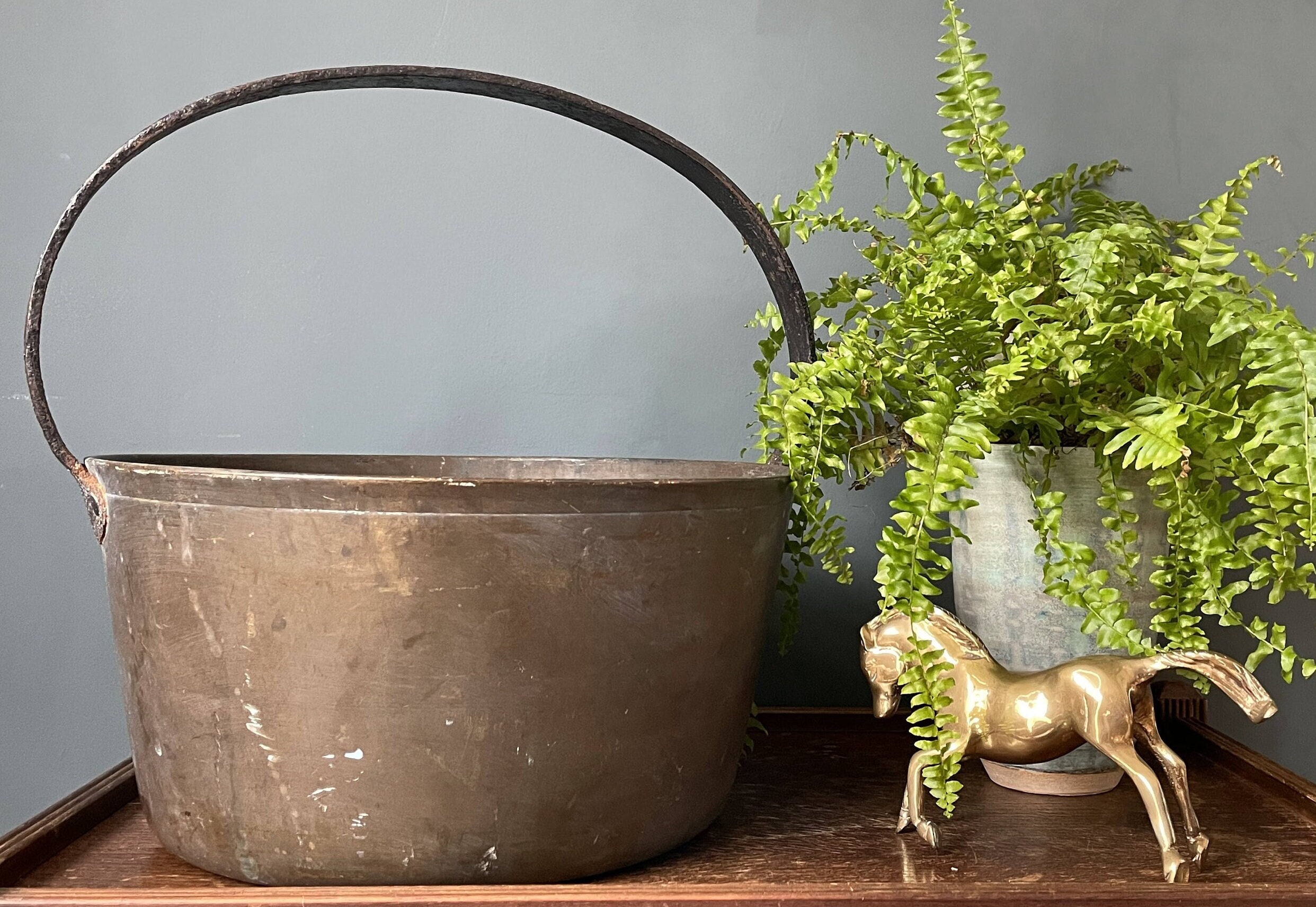 Large Antique Copper Kettle Brass Handle Rustic Farmhouse Decor Eng...