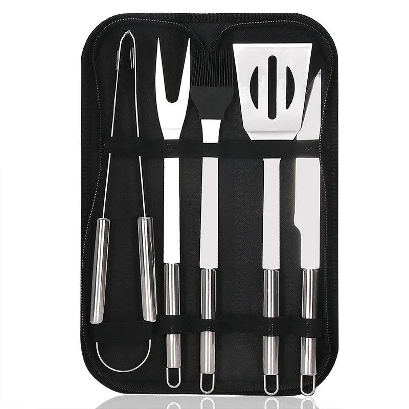 5 Pcs Outdoor Camping Barbecue Cooking Utensils Stainless Steel Por...