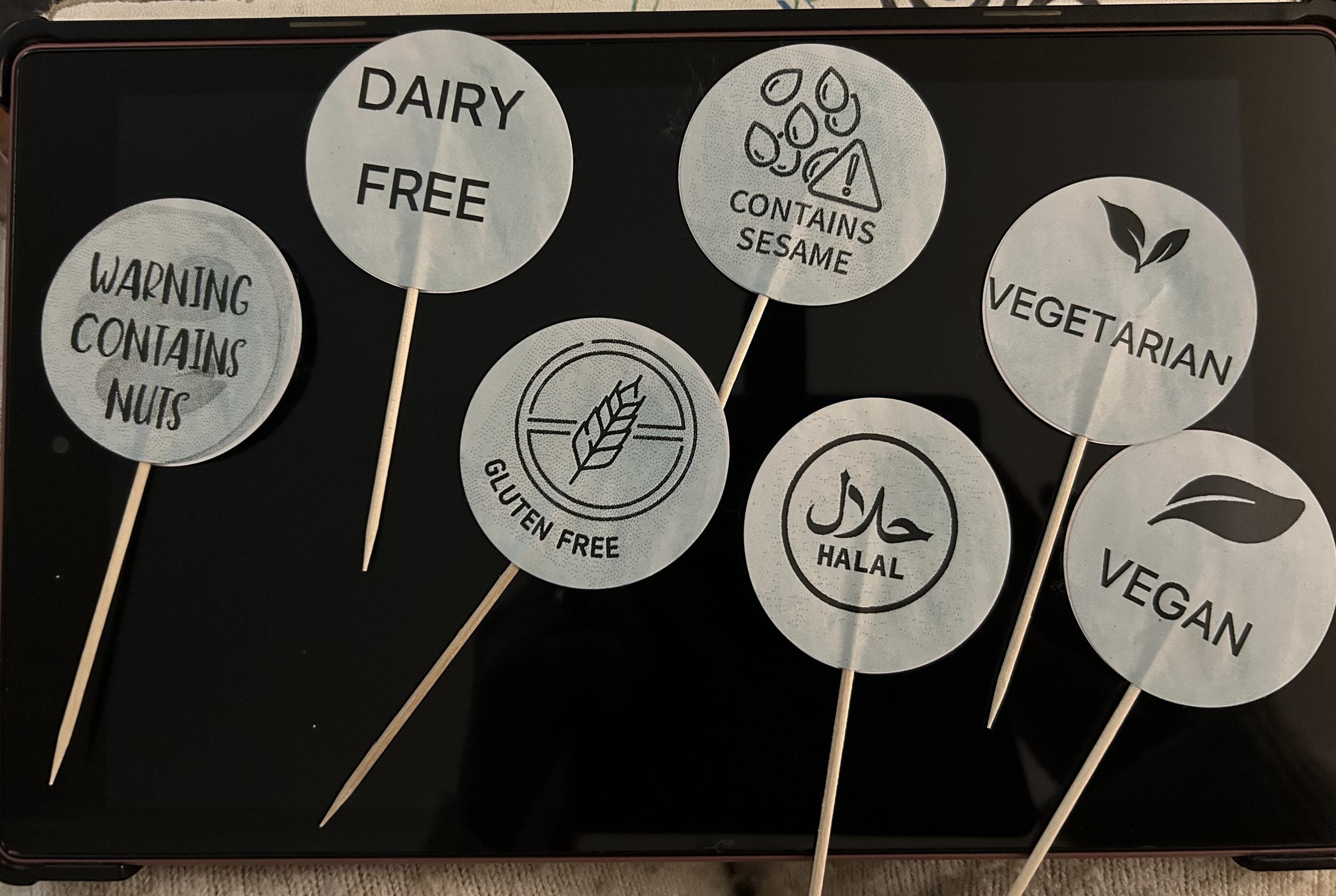 12 Allergen Food Label Cake Topper Sticks - Buffet Party Flags