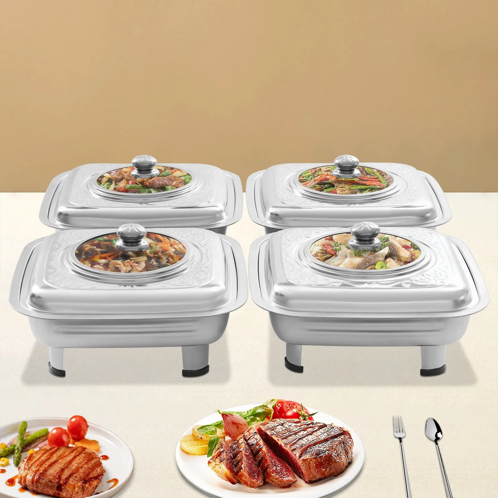 4pcs, Chafing Dishes Buffet Set Stainless Steel Buffet Food Holders...