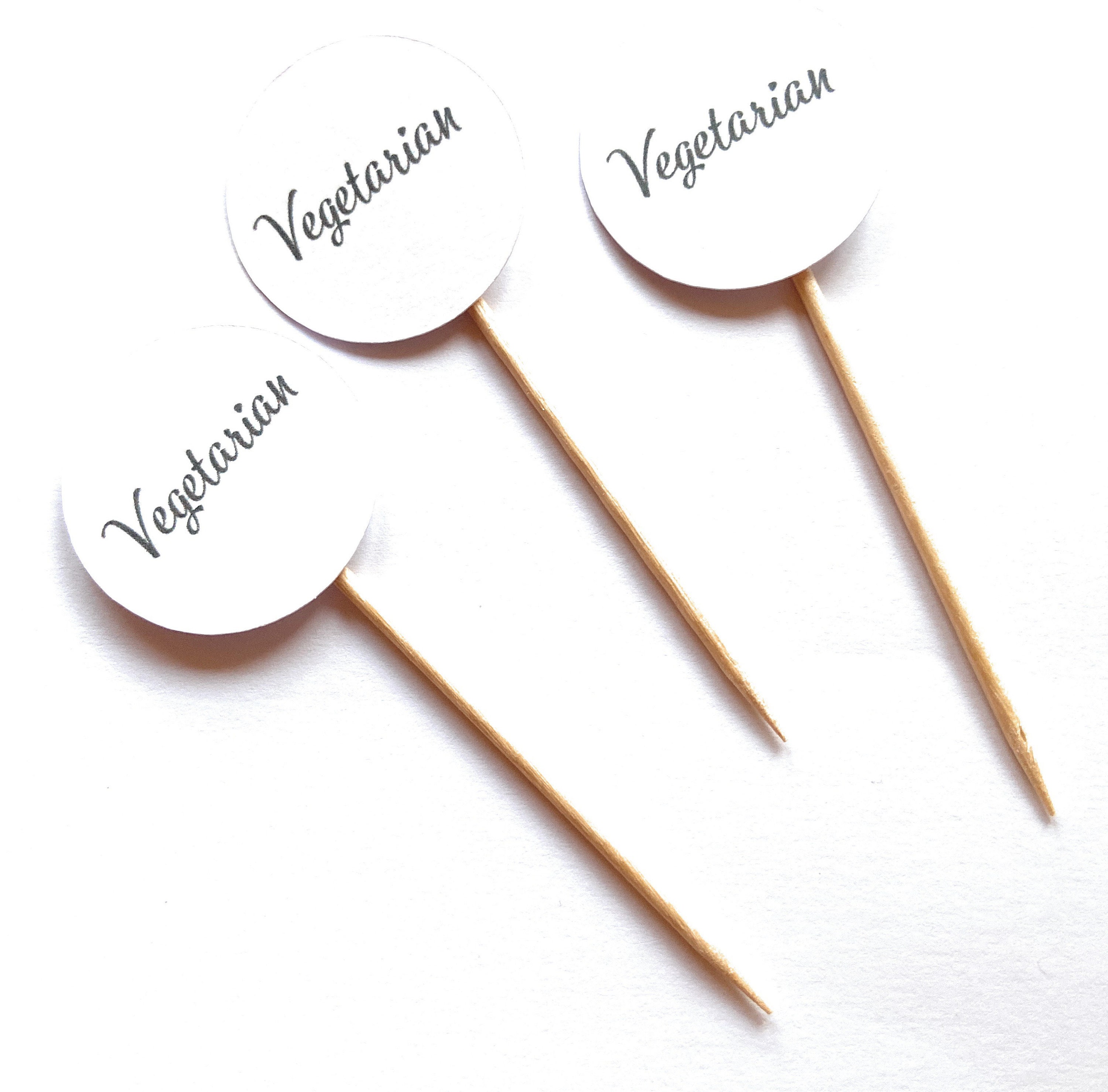 Printed to order. 2 inch round labels on cocktail sticks. Labels are double sided. Available in four...