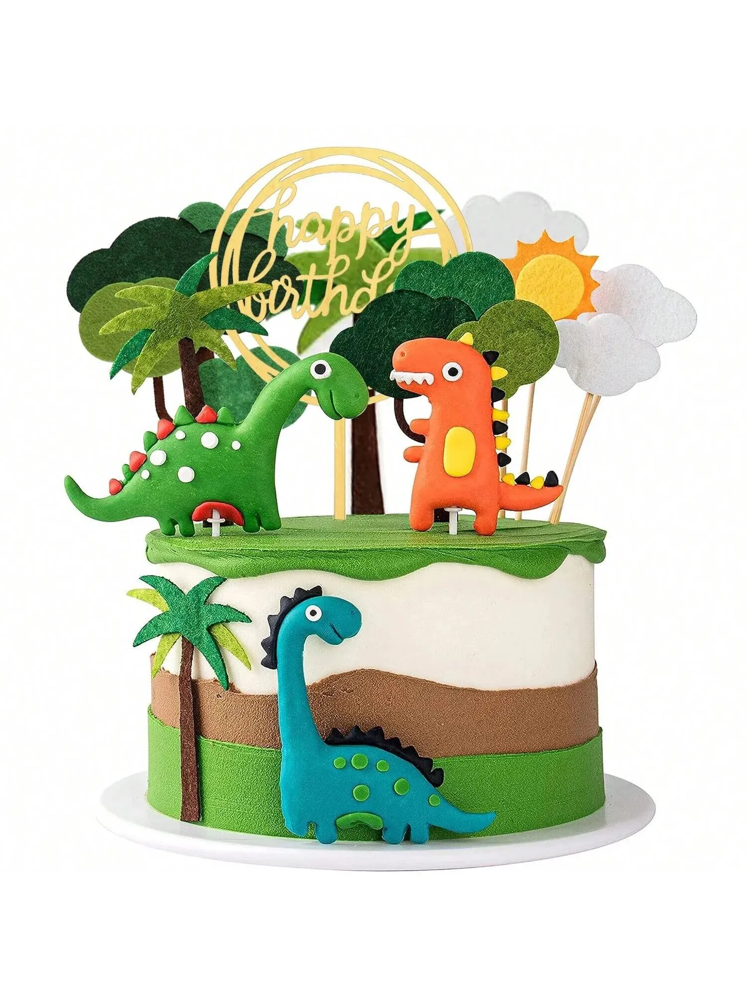 LaVenty Luxury Little Dinosaur Cake Decorations Dinosaur Cupcake Topper Green Rex Three Dino Cake To...