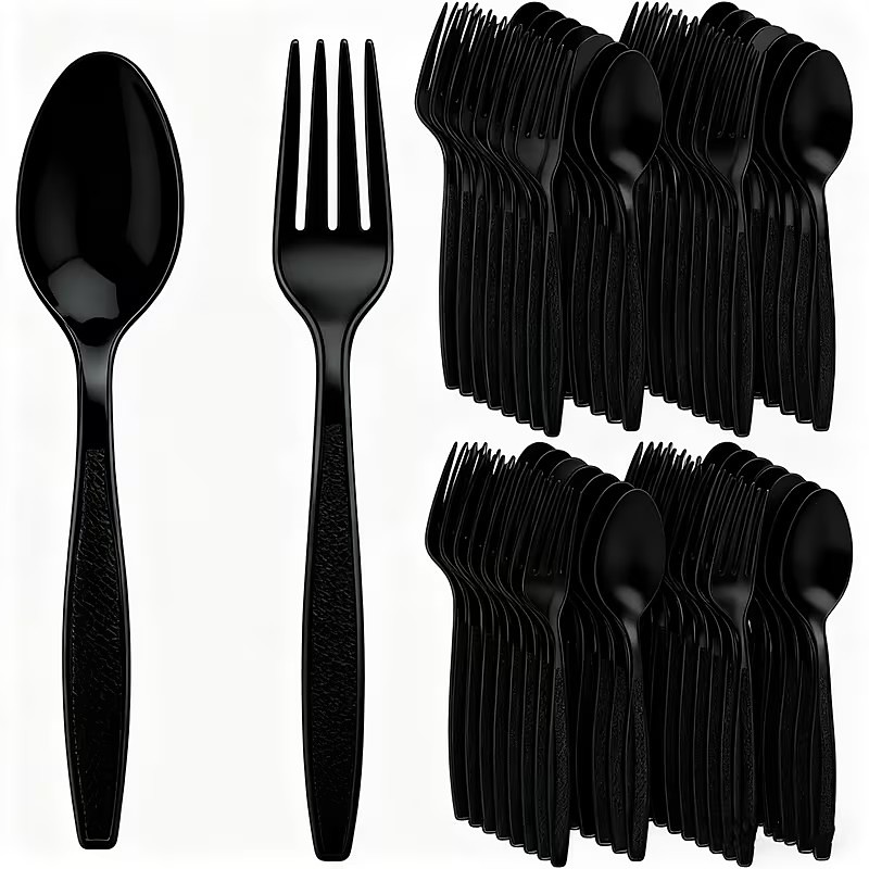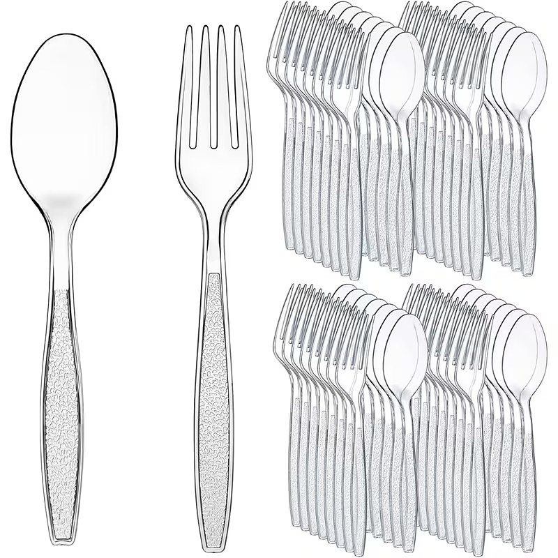 200-Piece Heavy-Duty Clear Plastic Cutlery Set - 100 Clear Disposab...