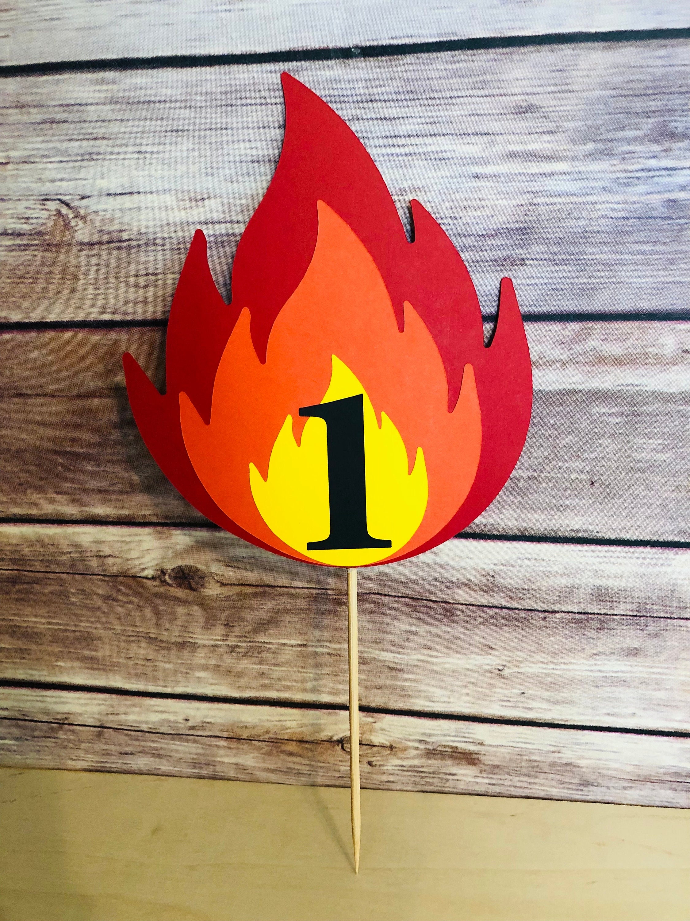 "Flame Cake Topper Made of cardstock and bamboo stick Topper measures 6\"x5\" Choose ...