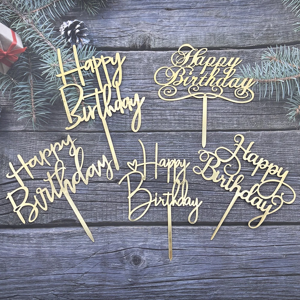 Large Size Happy Birthday Acrylic Cake Topper Black Gold Letter Decor for Party Supplies 33 Designs ...