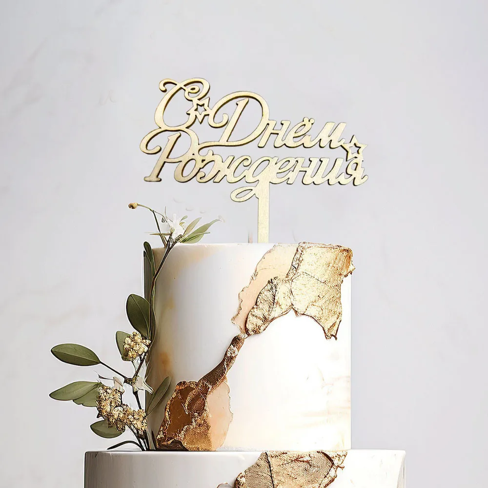 Russian Happy Birthday Cake Topper Cake Decoration Wooden Letters Party Topper