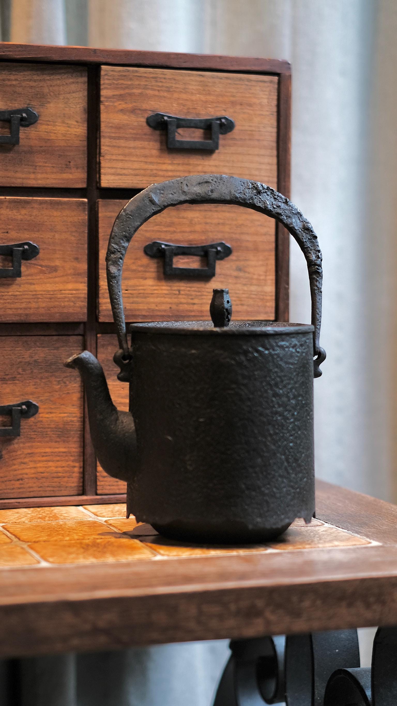 "Discover the quiet strength of Japanese ironware. This substantial vintage Tetsubin (cast iron...