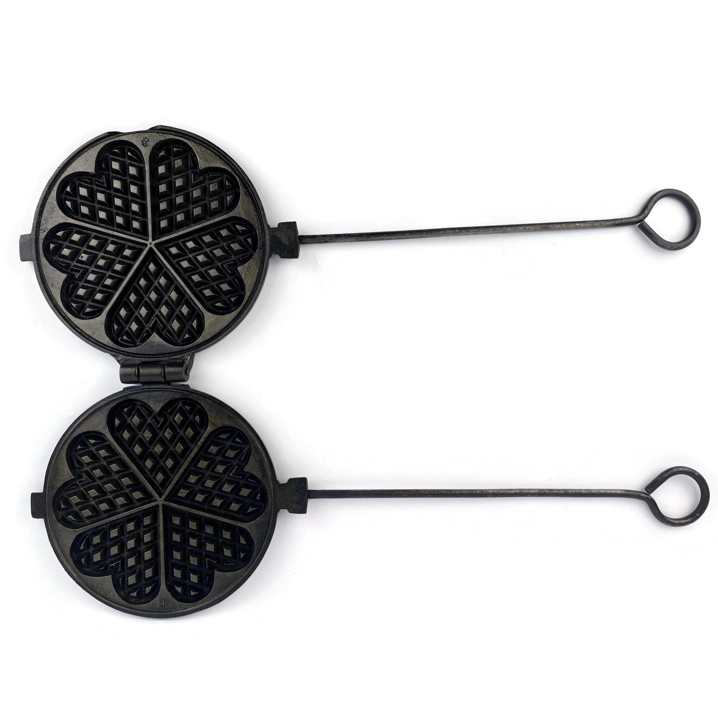 Vintage French Cast Iron Waffle Maker, MH 22 Heart Waffle Iron, Lon...