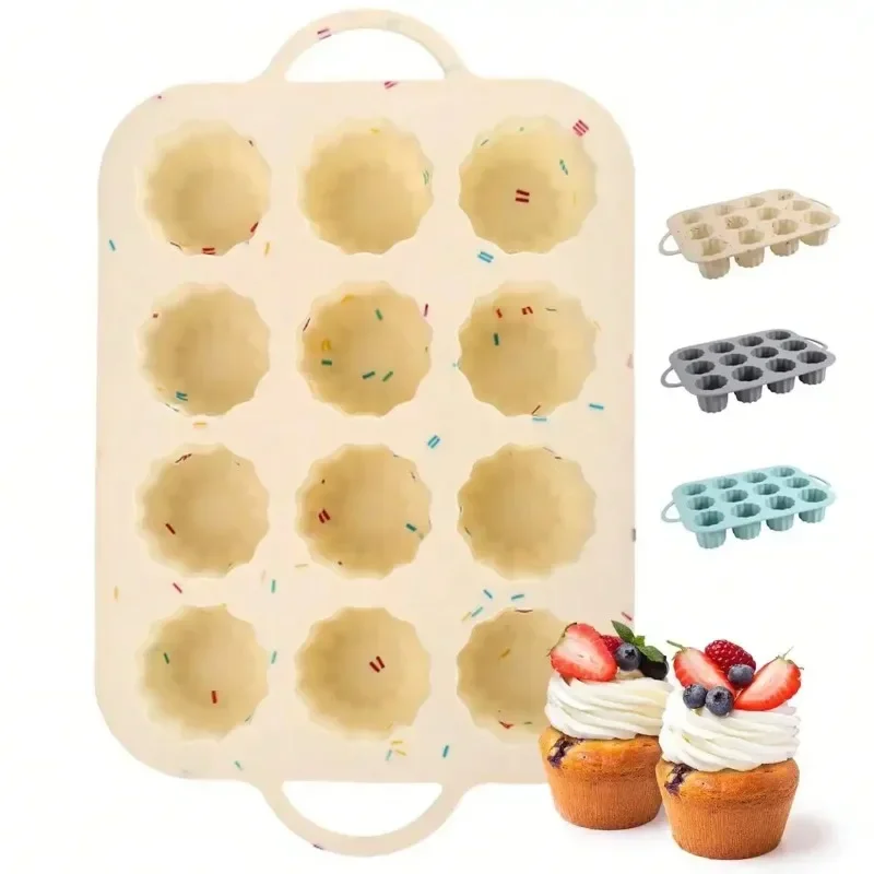 Silicone Muffin Pan Cup Cake Mold, 12 Cups Non-stick Baking Molds with Handle for Making Muffin Cake...