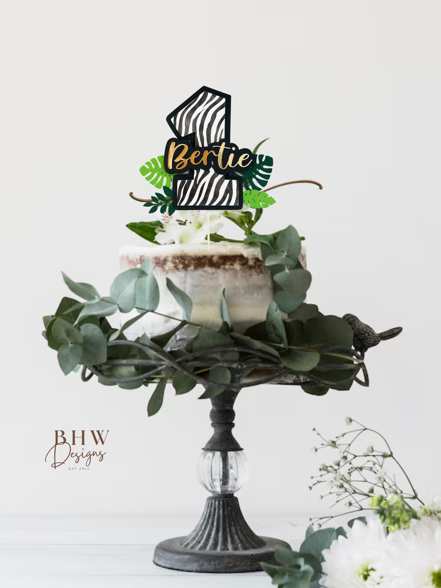 Age and Name Personalised cake topper Zebra print Animal print, jun...