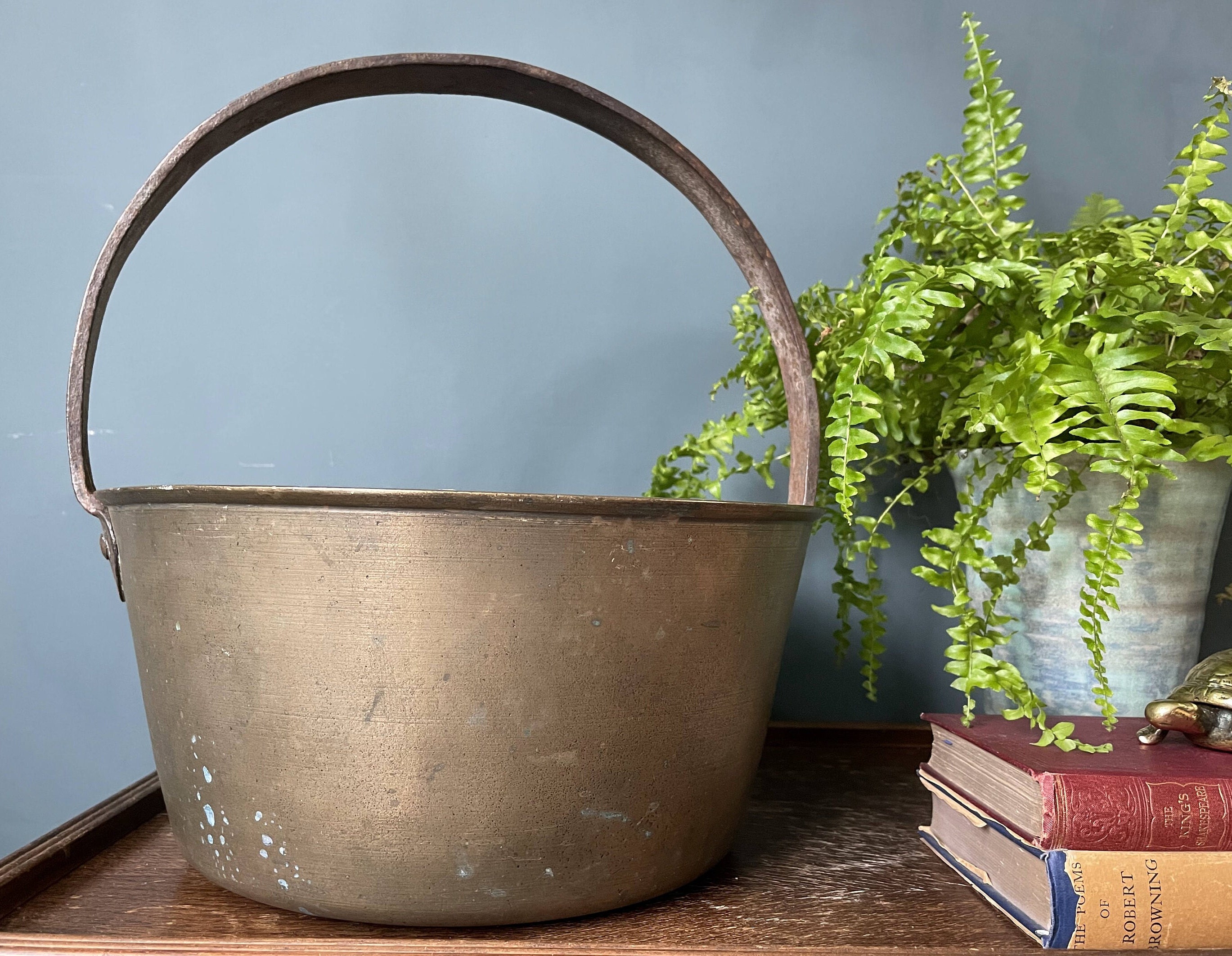 Vintage Brass Jam Pan / Large Conserve Pan with Cast Iron Handle - ...
