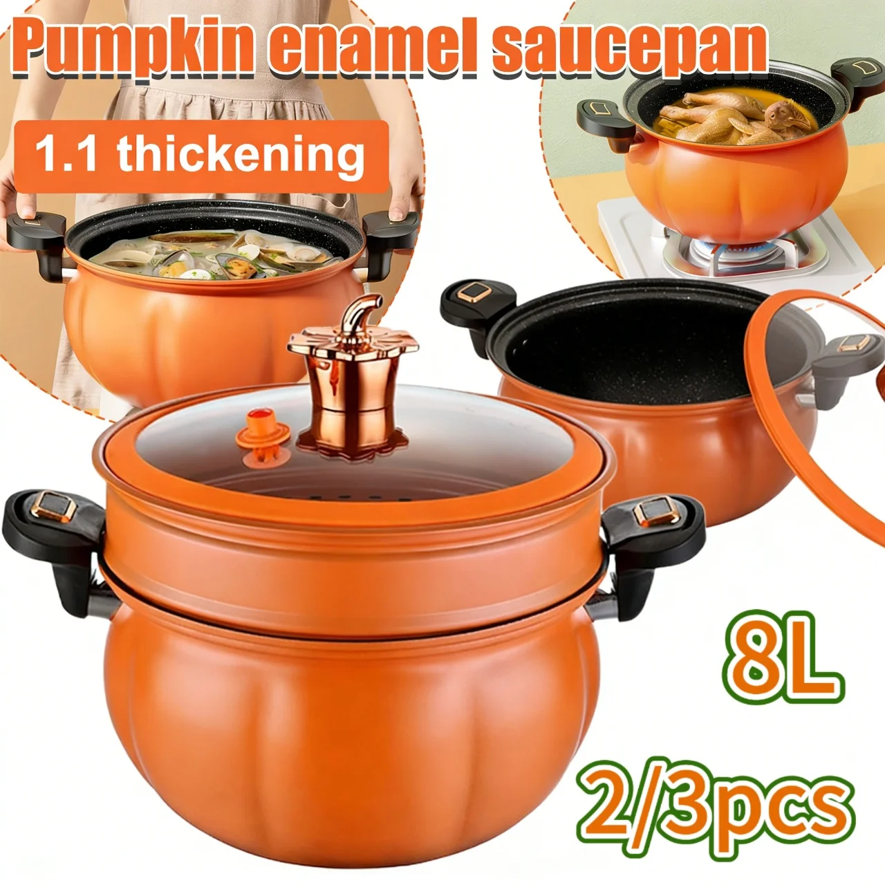 3pcs (Pot+Lid+Steamer)/2pcs (Pot+Lid)Enamel Cast Iron Soup Pot, Hou...