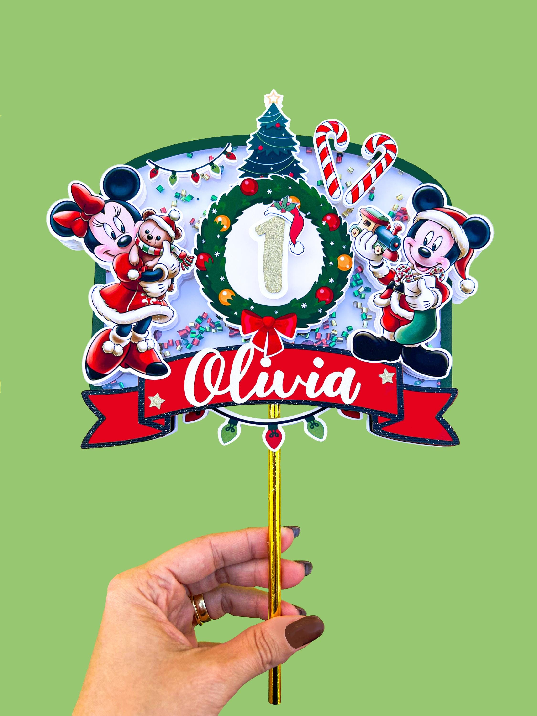 Christmas Mickey Mouse Cake Topper, Christmas Mickey Cake Topper, C...