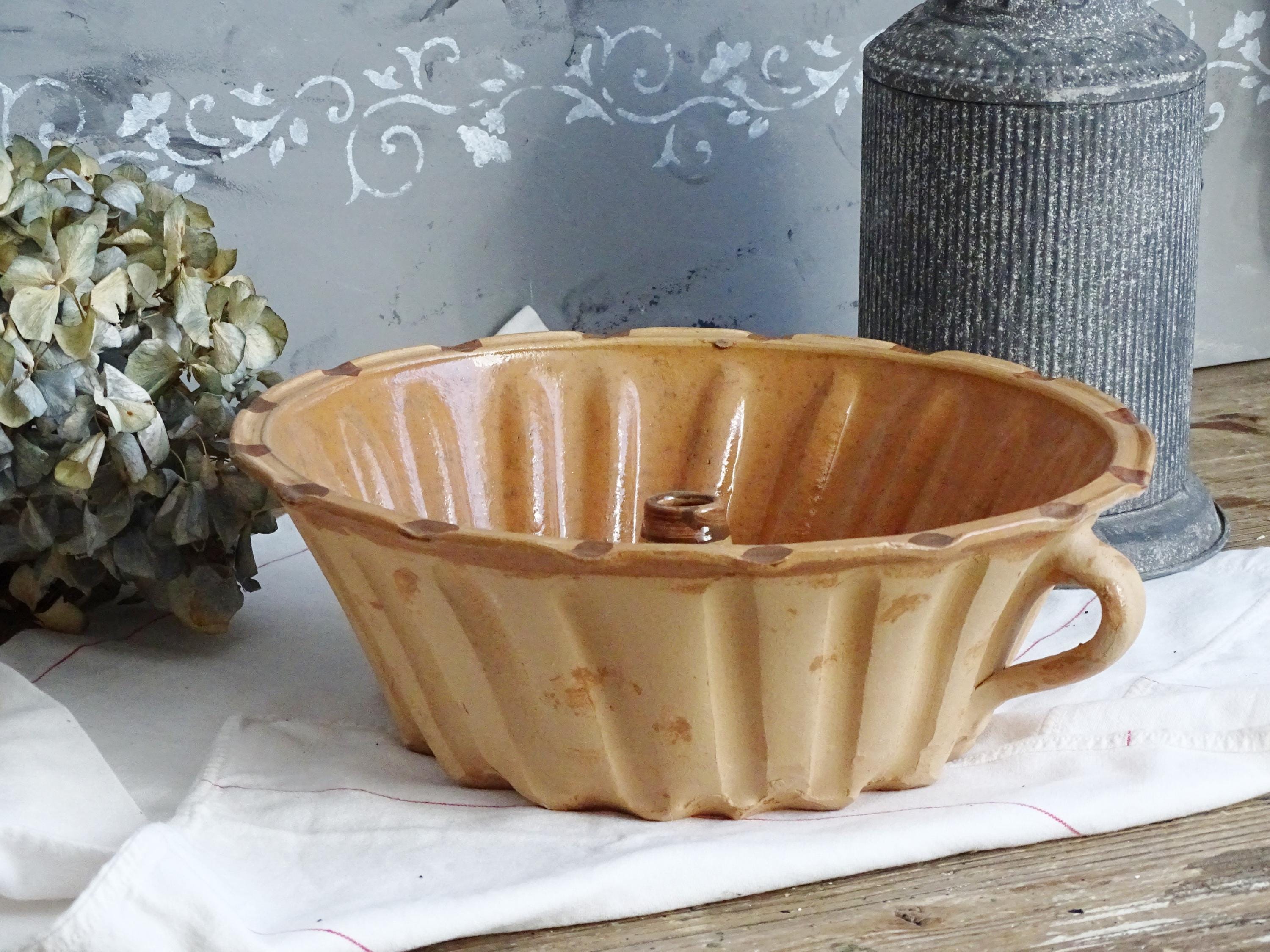 Large Pottery Round Bake Mold, Ceramic Kouglof Cake Pan w/ Handle, ...