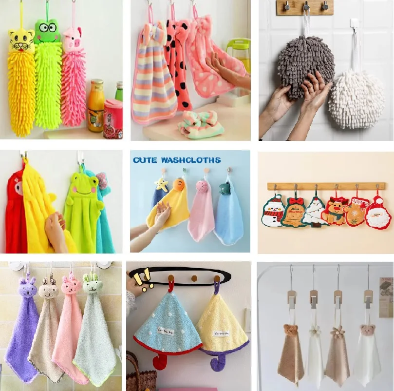 4pcs Serviette du bout des doigts en molleton de corail, serviette suspendue pour essuyer les mains,...