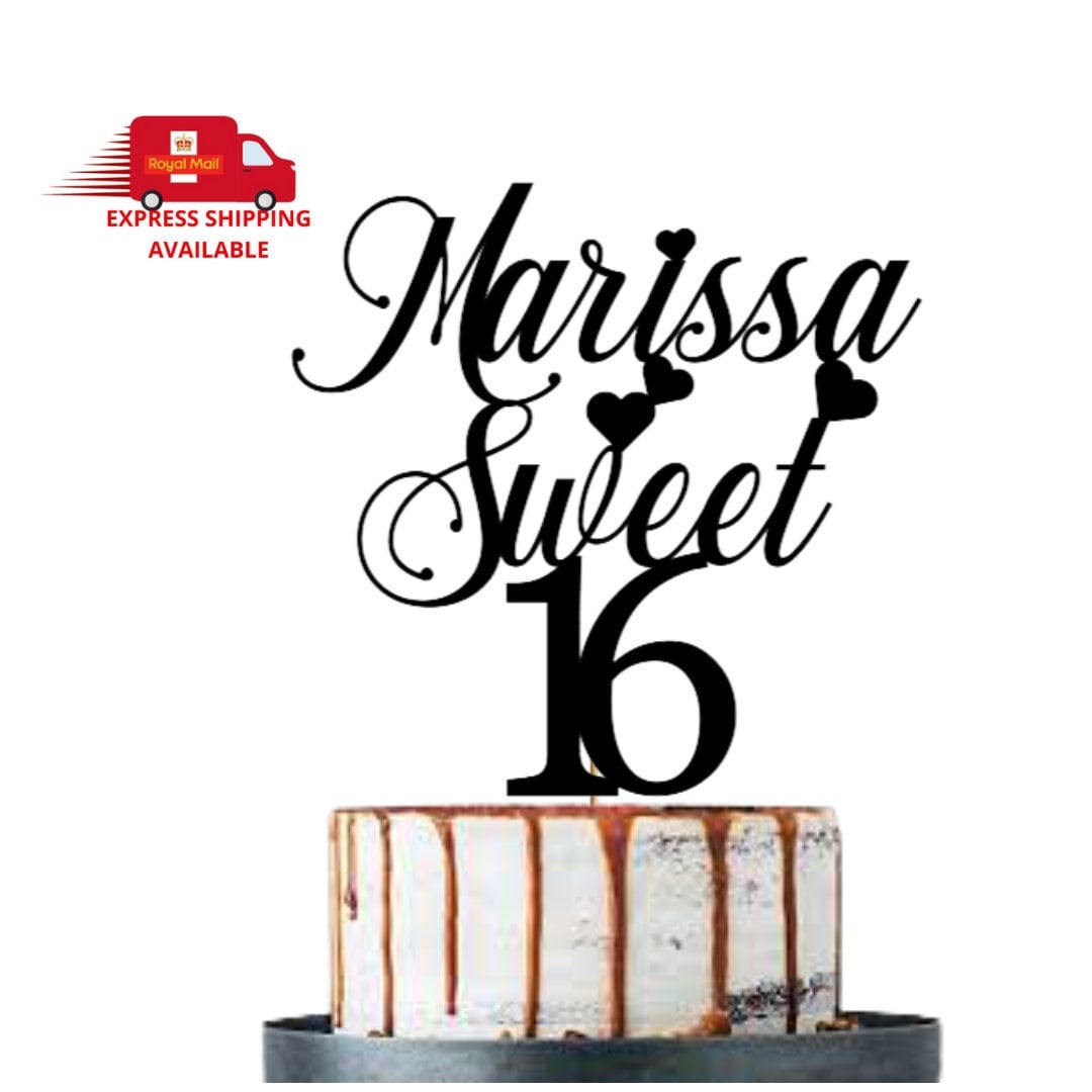 Personalized Name Sweet 16 Custom Cake Topper, Sweet 16th Birthday,...