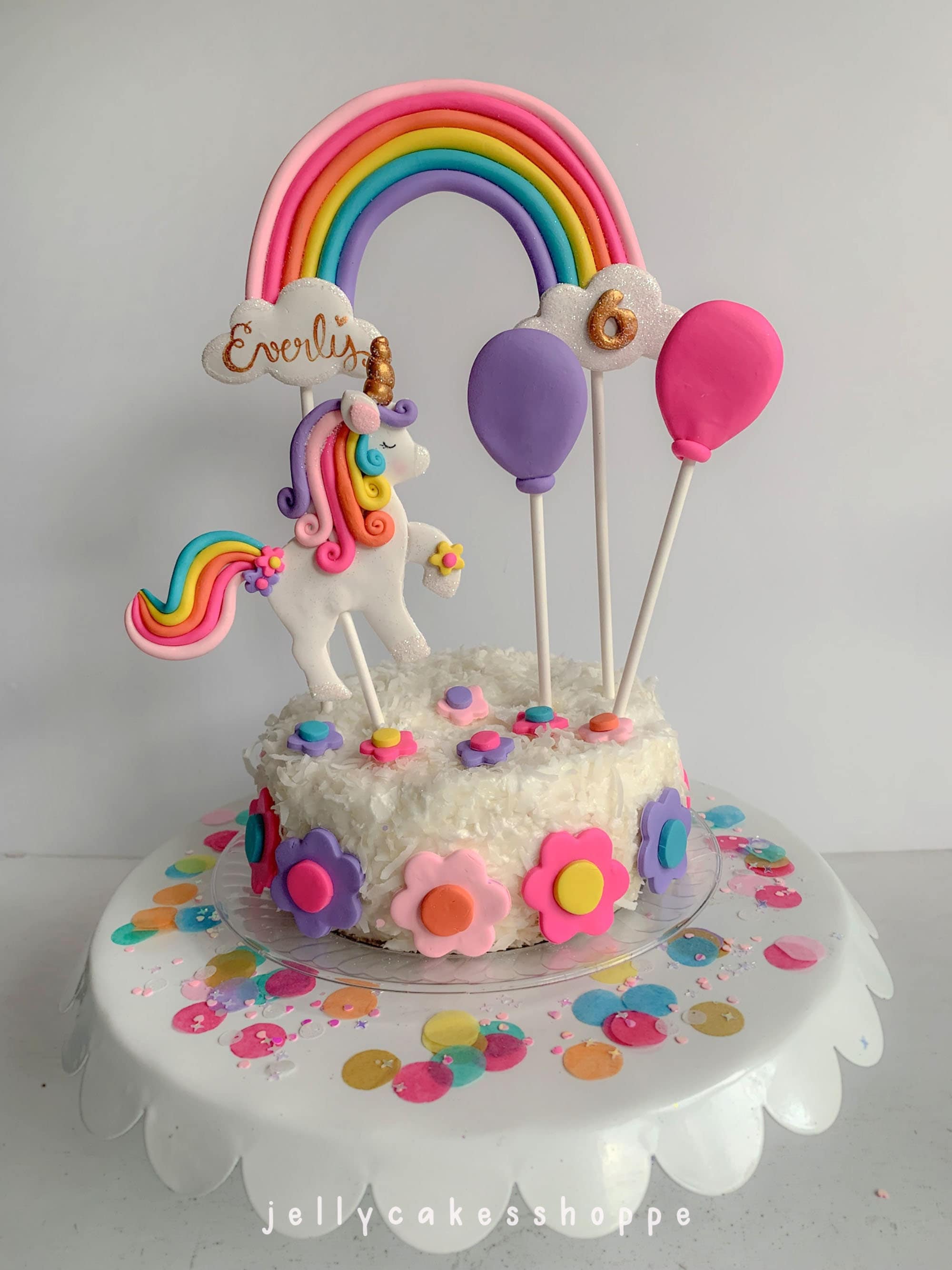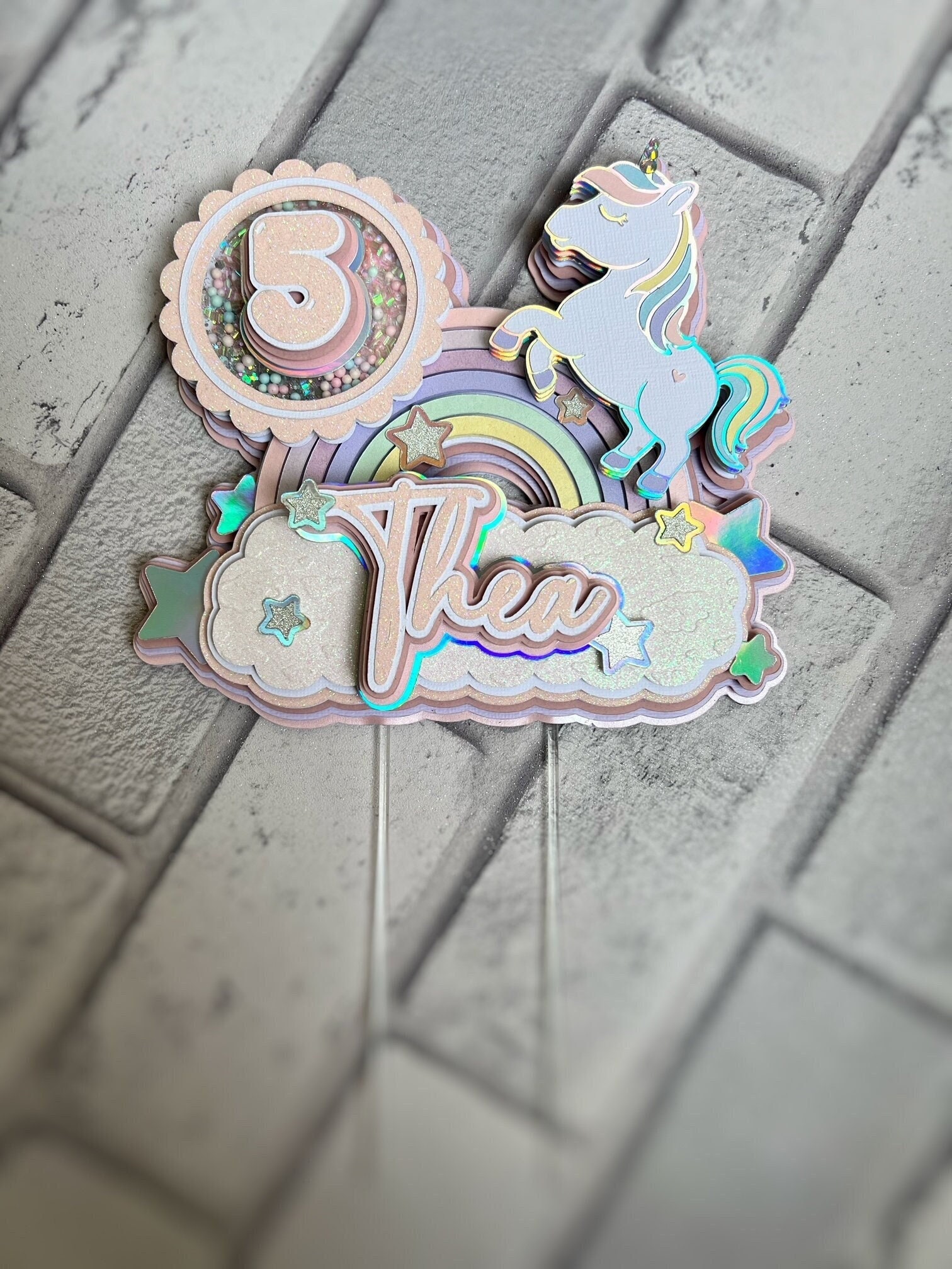 Handmade personalised rainbow and unicorn cake topper to add a sparkle to any cake. Perfect for a Un...