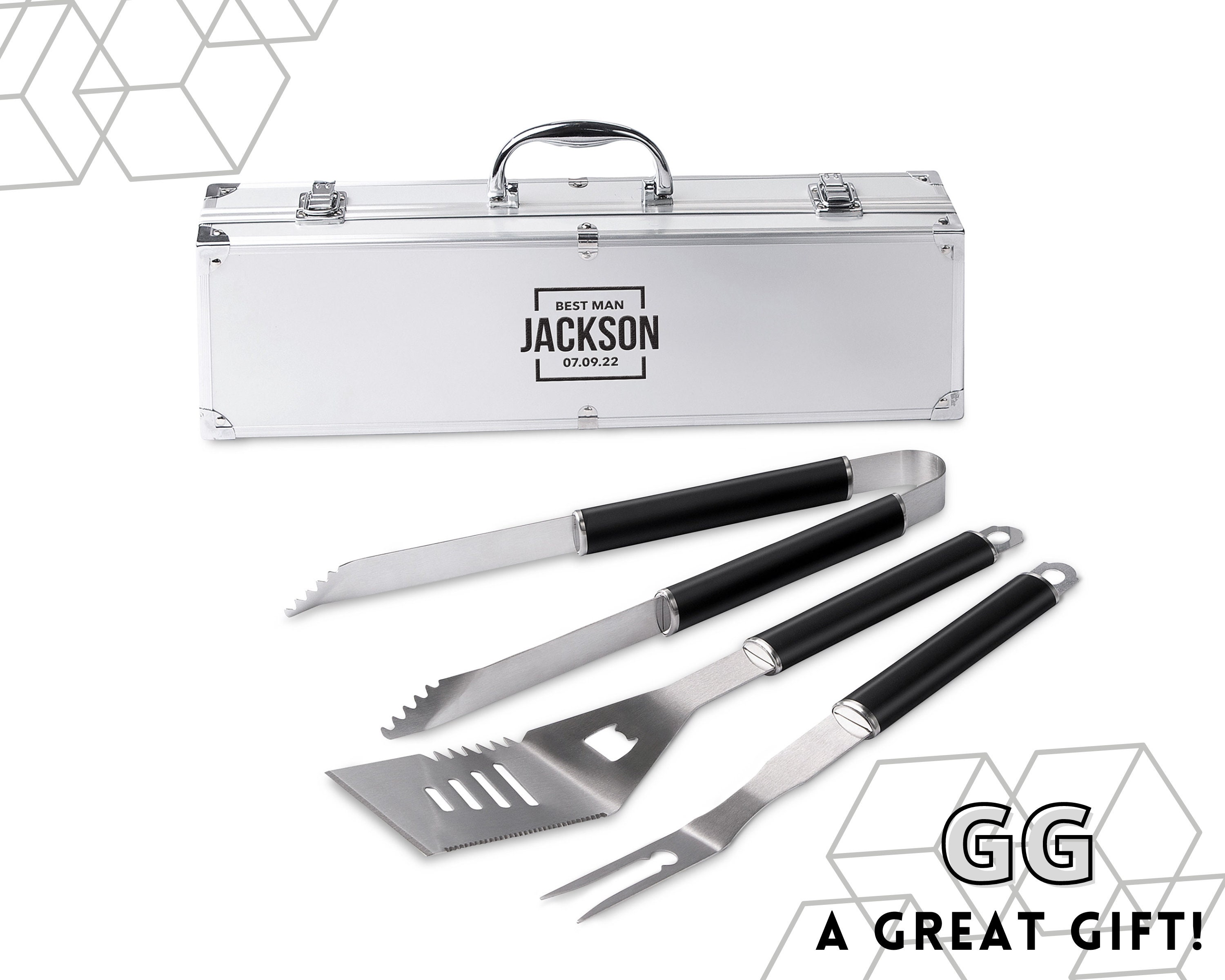 Barbeque Tool Set with Personalised Carry Case - Men's BBQ Set Grillmaster Gift for Dad, BBQ Tool Se...