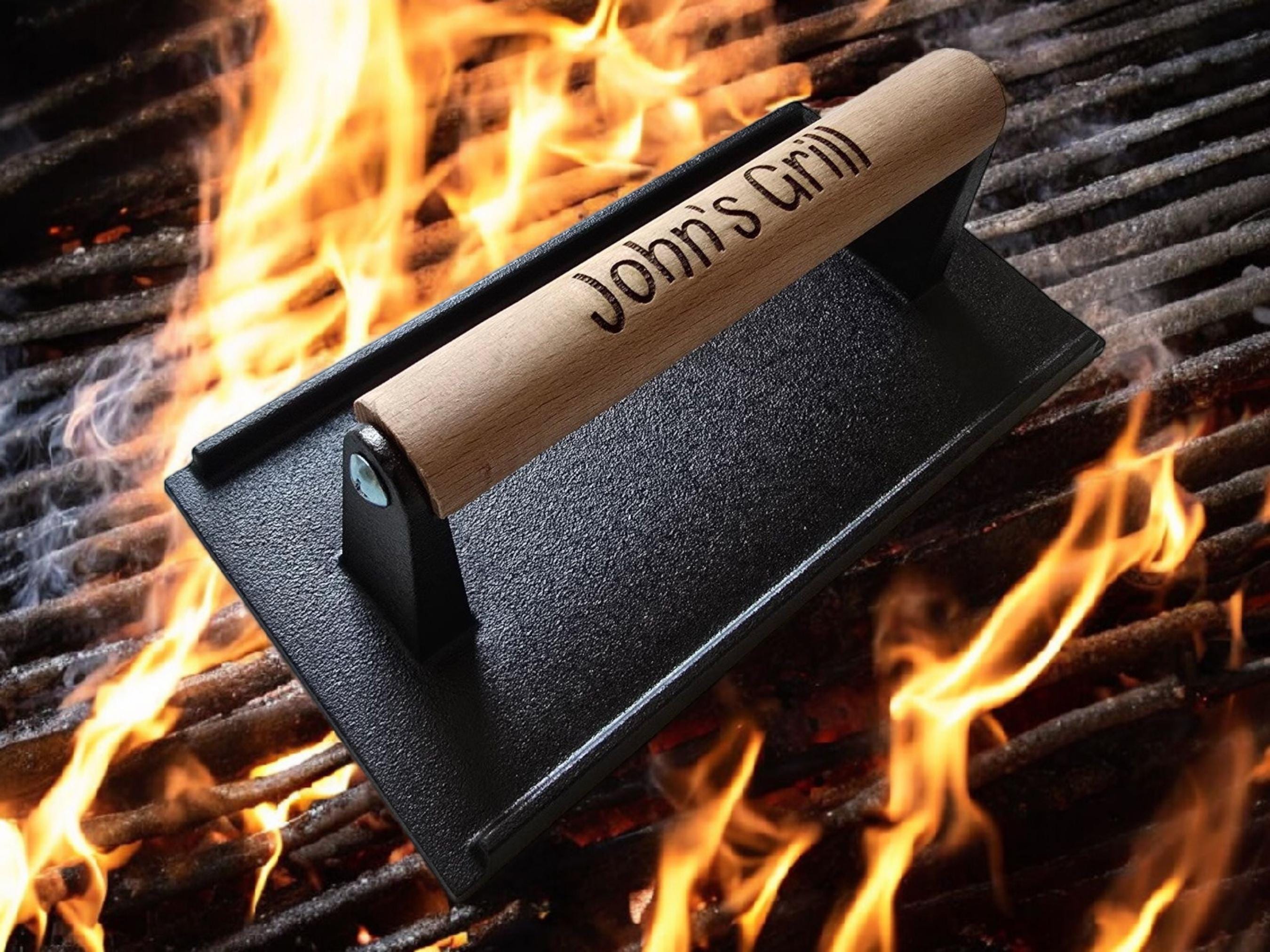 Personalized Cast Iron Burger Smasher: Engraved Grilling Gift for 6...