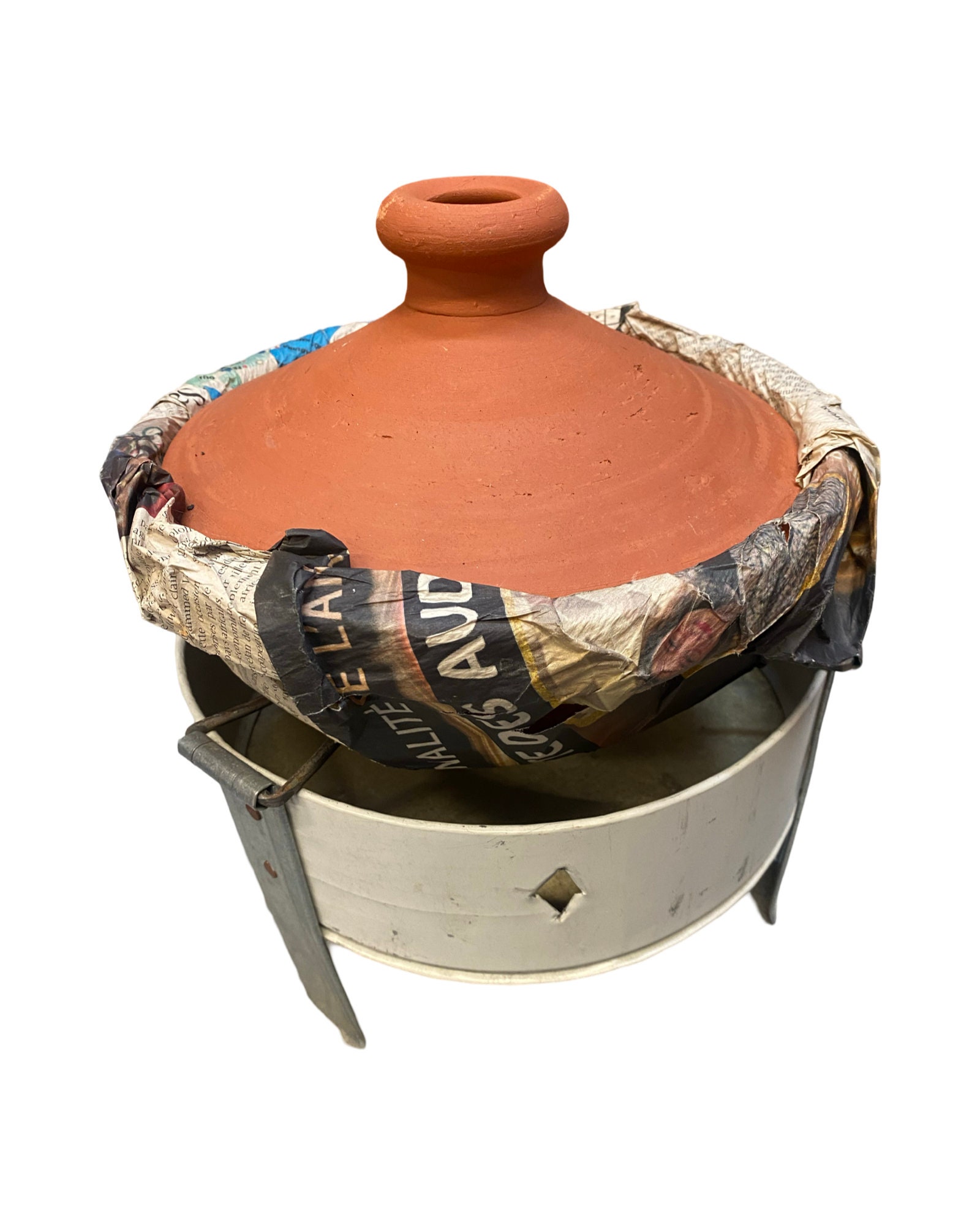 Moroccan Handmade clay Tajine 26cm and Metal Base Majmar
