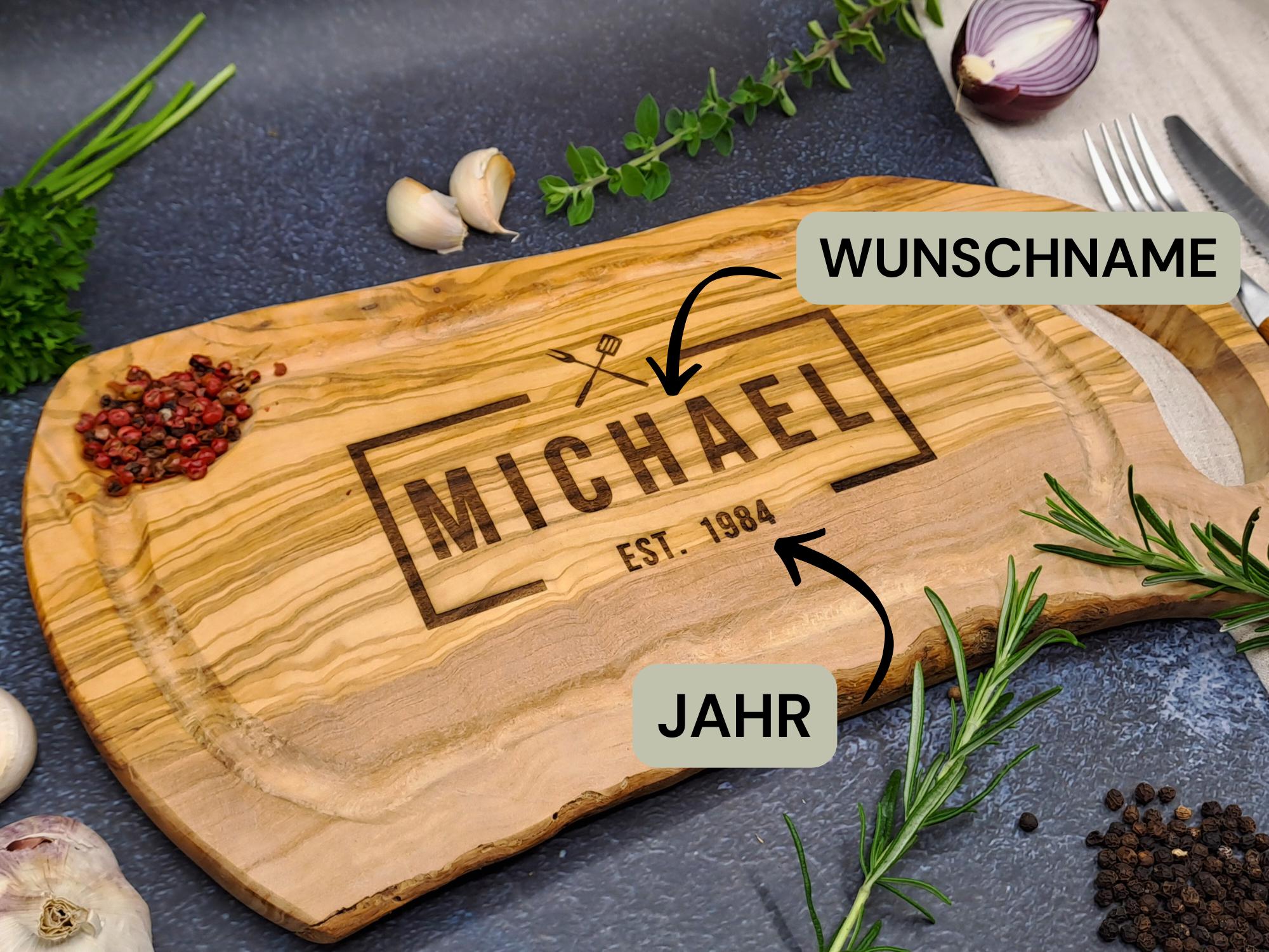 Discover our large olive wood steak board with personalized engraving. The perfect gift for any gril...