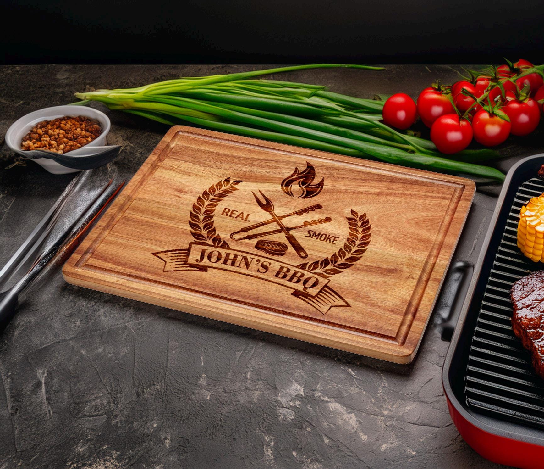 Personalized Acacia Wood BBQ Cutting Board - Custom Name Gift for Grill Lovers Looking for the perfe...